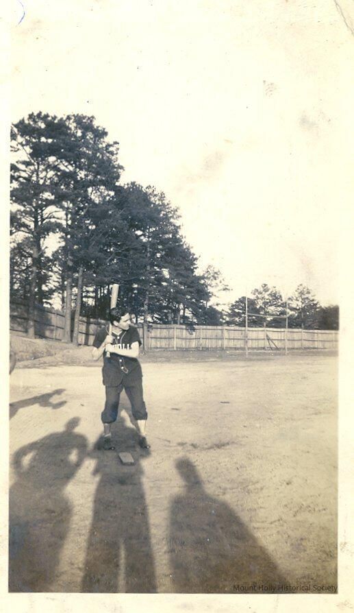 "Mitti Huffstetler": Man in baseball uniform at bat on field