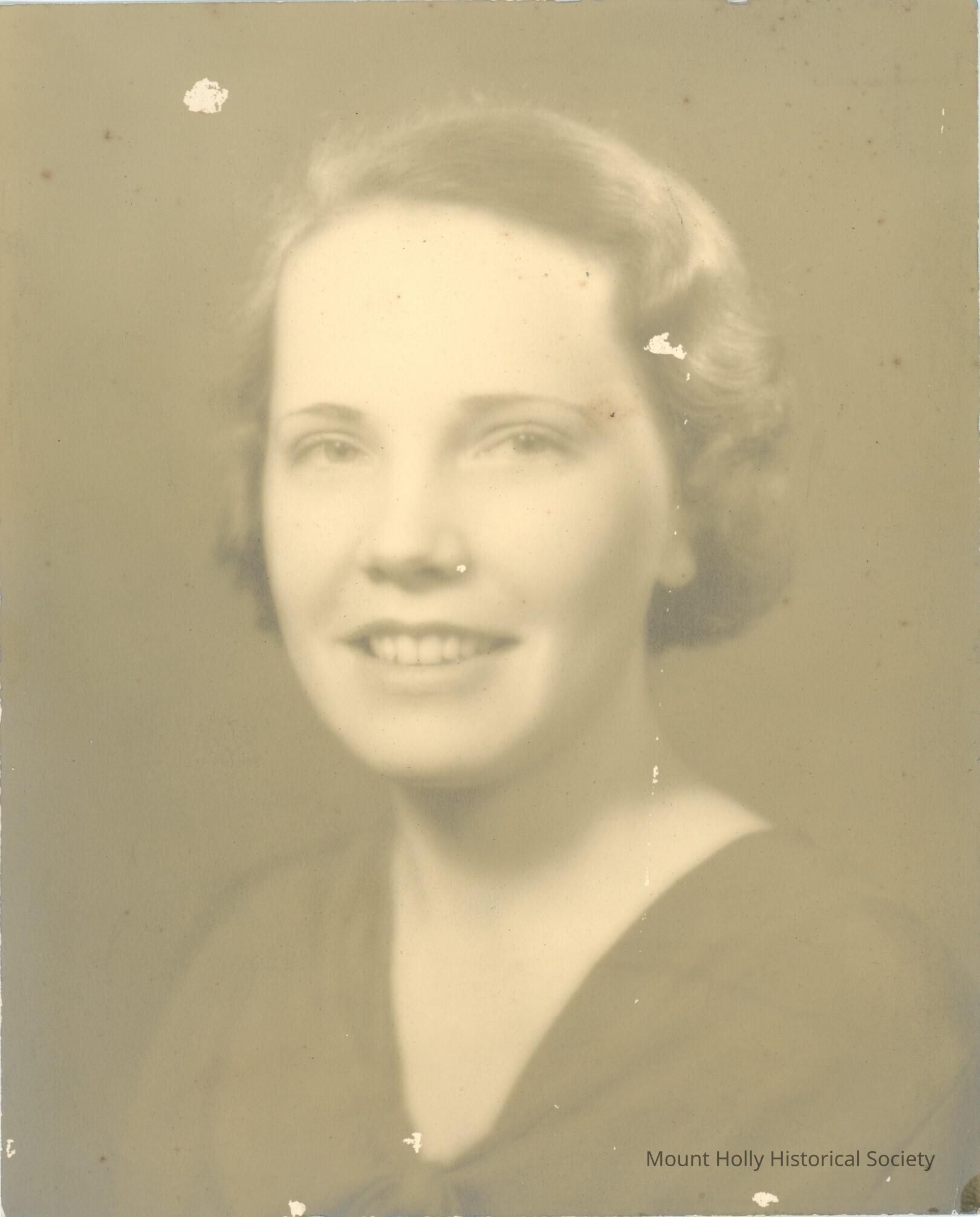 Young white woman, turned to camera, from shoulders up. From back of photo: "Margaret Davenport?"