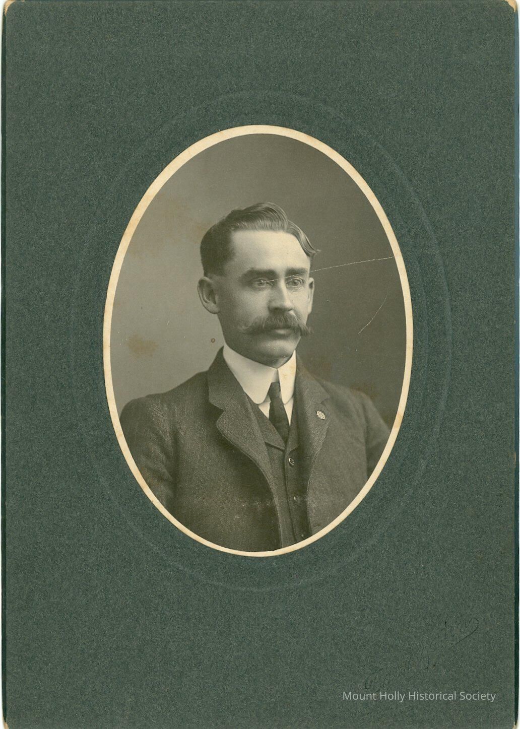 Middle-aged white man in suit and tie, from chest up, facing right; from back "W.L. Tucker"