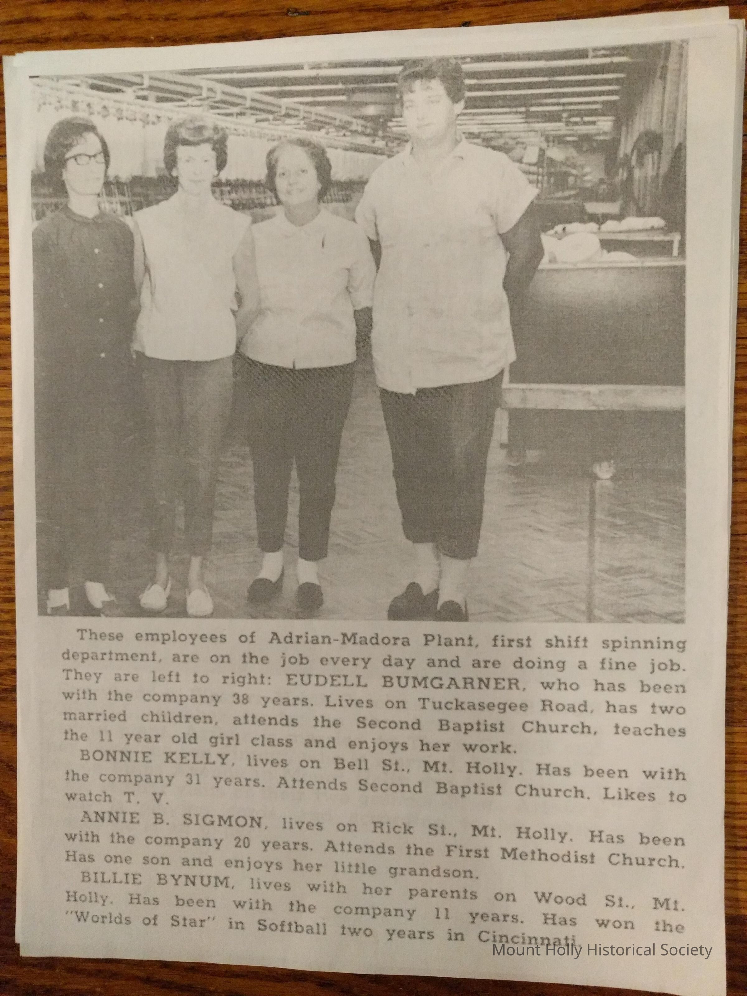 Copy - Eudell Bumgarner, Bonnie Kelly, Annie Sigmon, Billie Bynum. Adrian Madora Mill