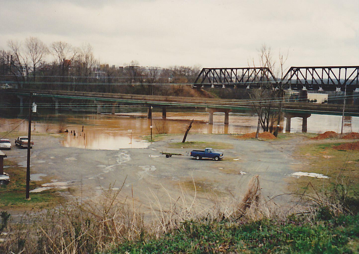 Flood at river access near the bridge