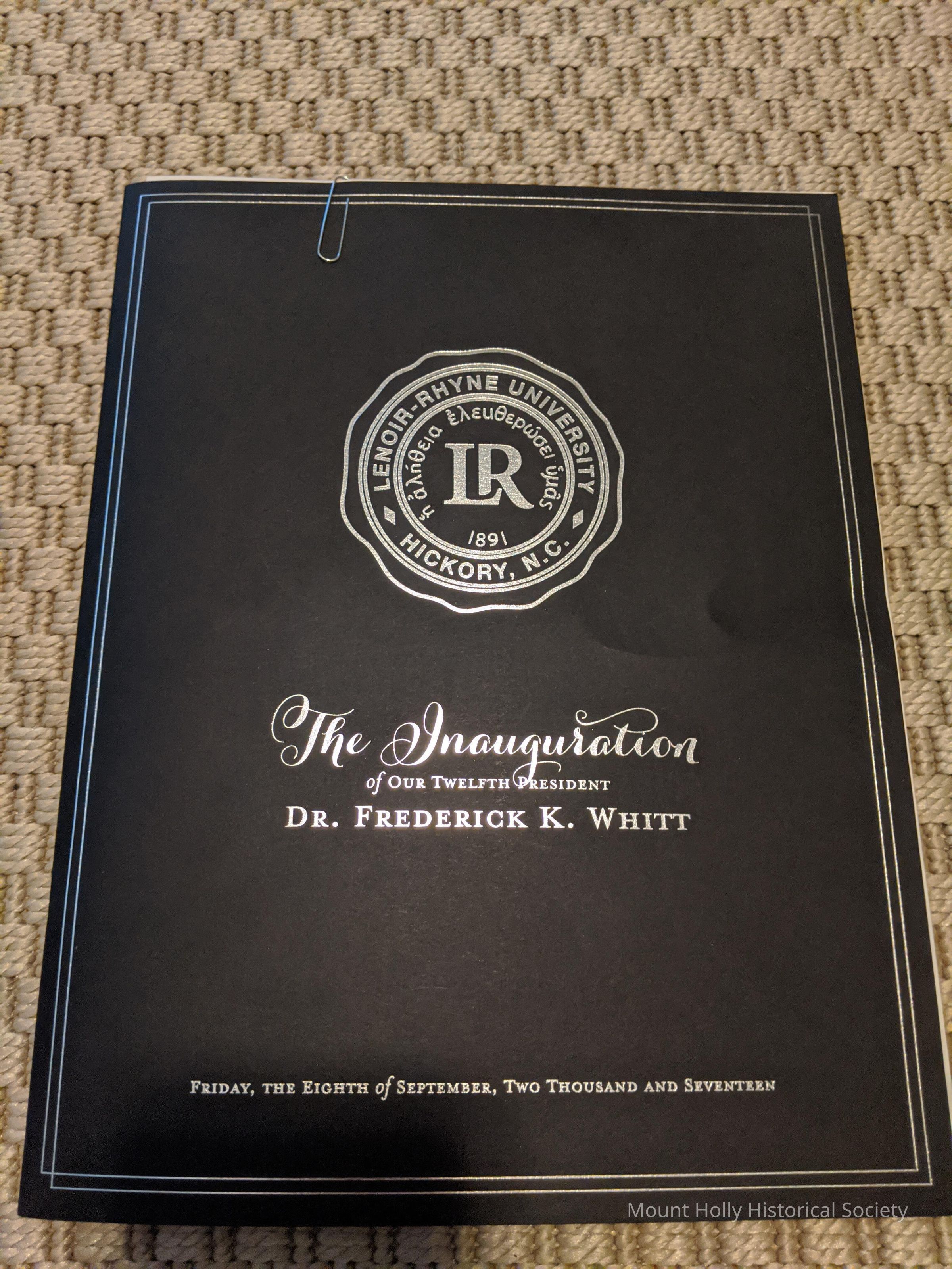 Inaguration of Dr Frederick K Whitt to Lenoir-Rhyne University - Program donated by Dorothy Wiles