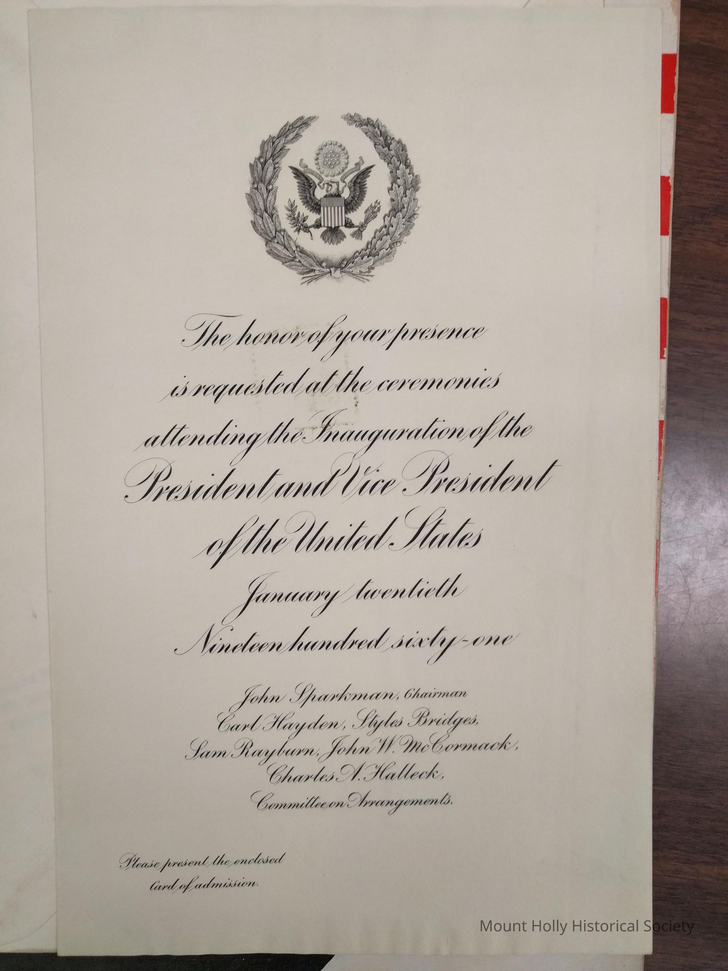 Official Inaugural Program of John F. Kennedy and Lyndon B. Johnson Plus invitation to event From Reggie Henkle from Davenport Home on S. Main St.
