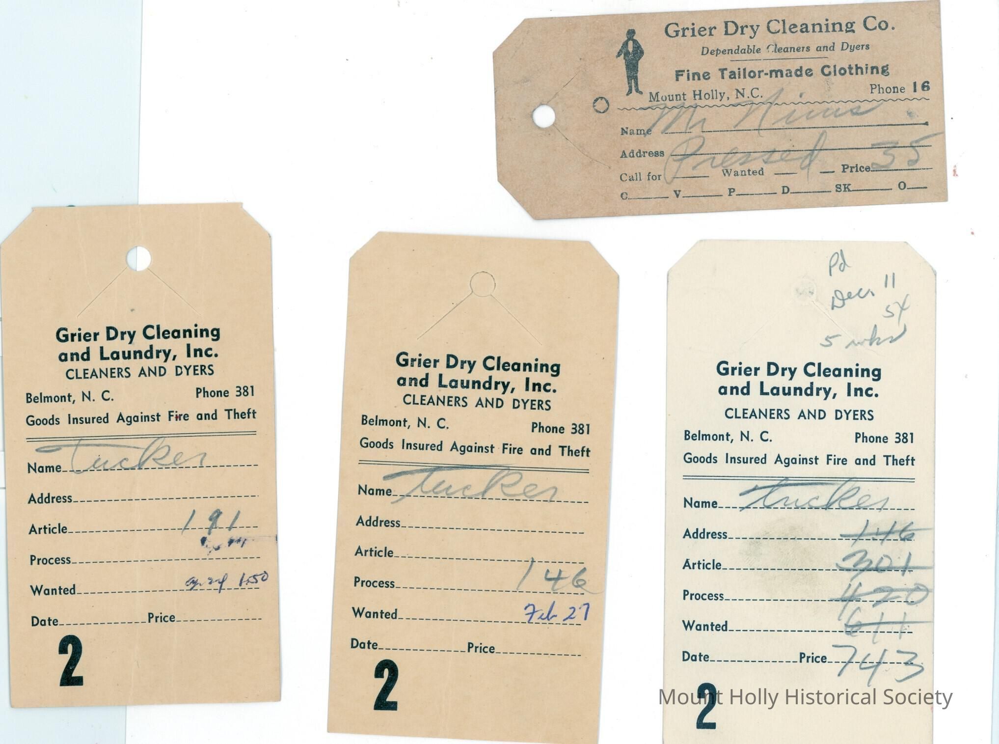 Grier Dry Cleaning Co. - Nims/Tucker (Dry Cleaning Receipts)