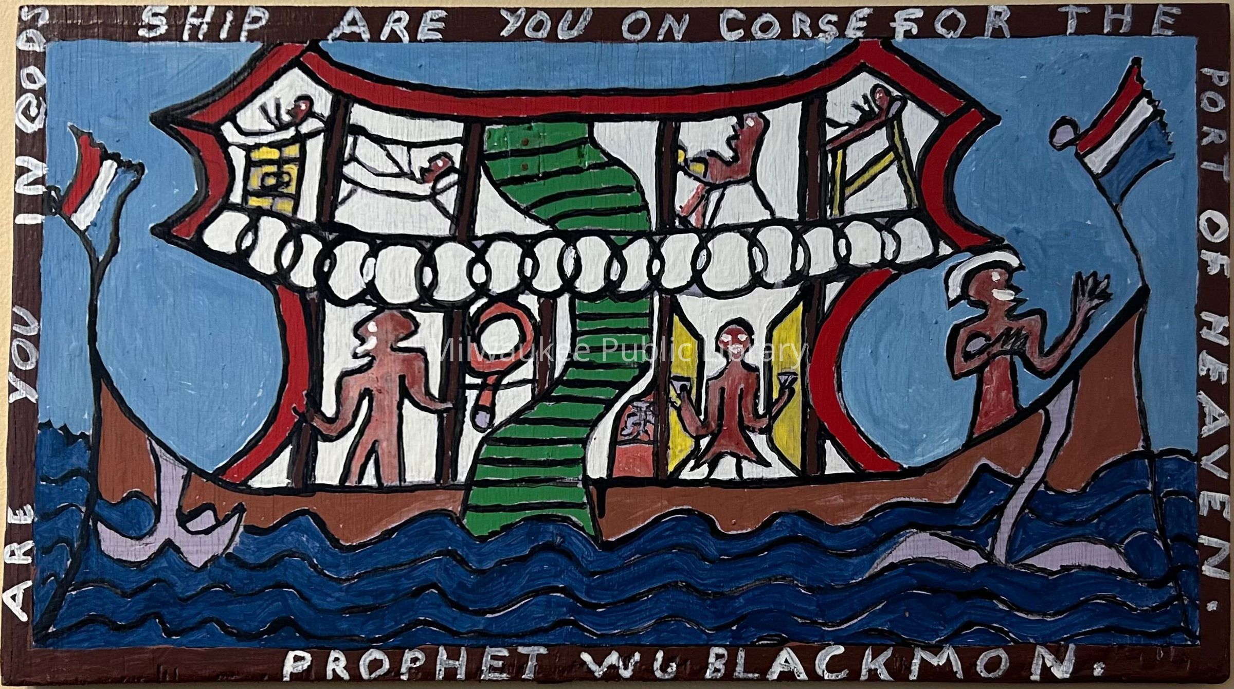 The exhibition catalog, Signs of Inspiration: The Art of Prophet William J. Blackmon (Haggerty Museum of Art, 1999), is available in the Art Reference Collection at 759.13 B628.