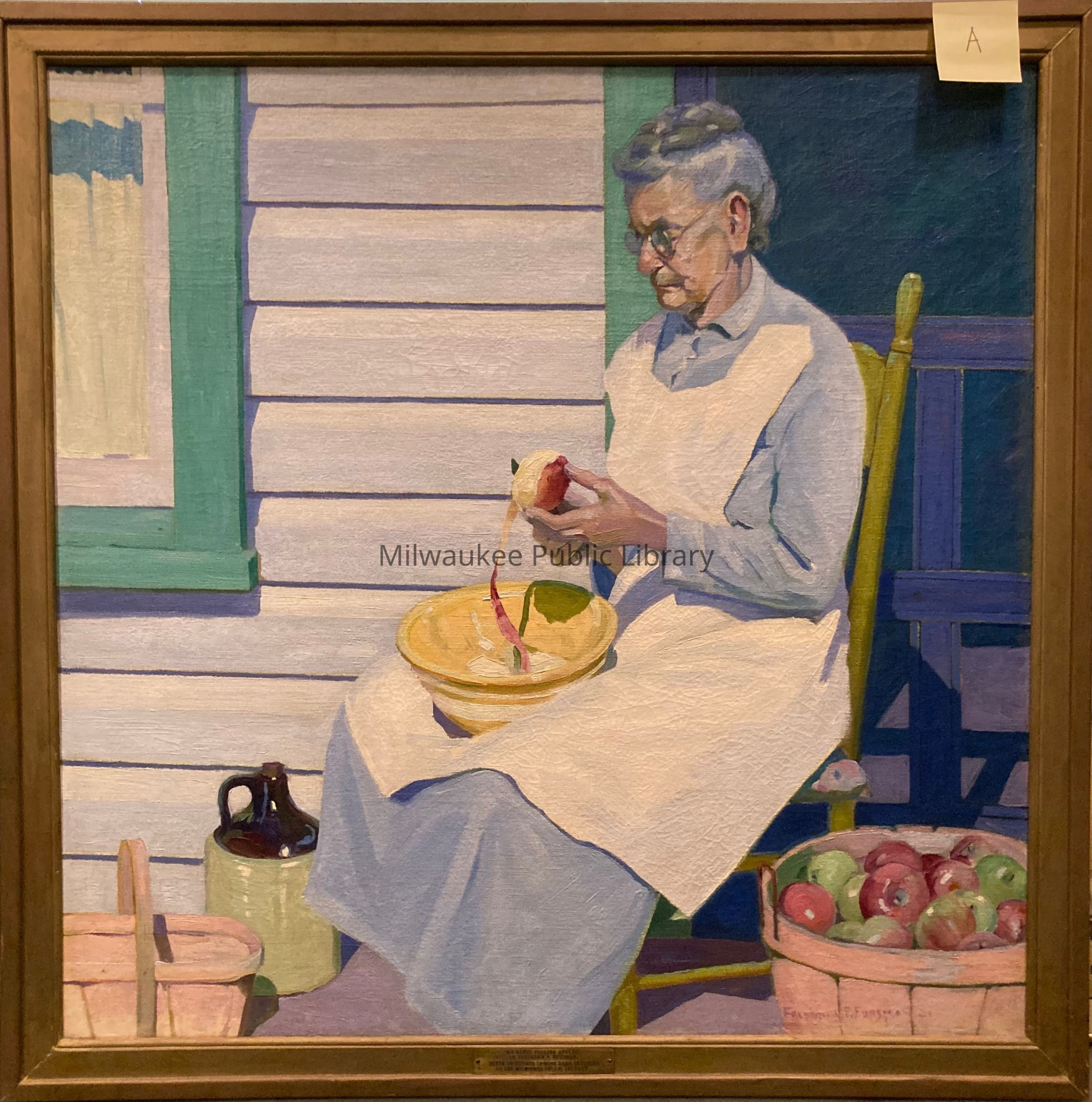 Frederick Frary Fursman (1874-1943) painted and taught in Chicago, Milwaukee, and Michigan and made notable contributions to the development of impressionism. He is especially remembered for founding the Saugatuck Summer School of Painting which for more than 30 years was an important influence on generations of regional artists. As an instructor at the UW-Milwaukee Art Department, he formed a lifelong friendship with Elsa Ulbricht who would succeed him as director of the Saugatuck Summer School of Painting. This work was purchased for the Milwaukee Public Library in honor of both Fursman and Ulbricht, who is displayed nearby in the Historical Rotunda Gallery.