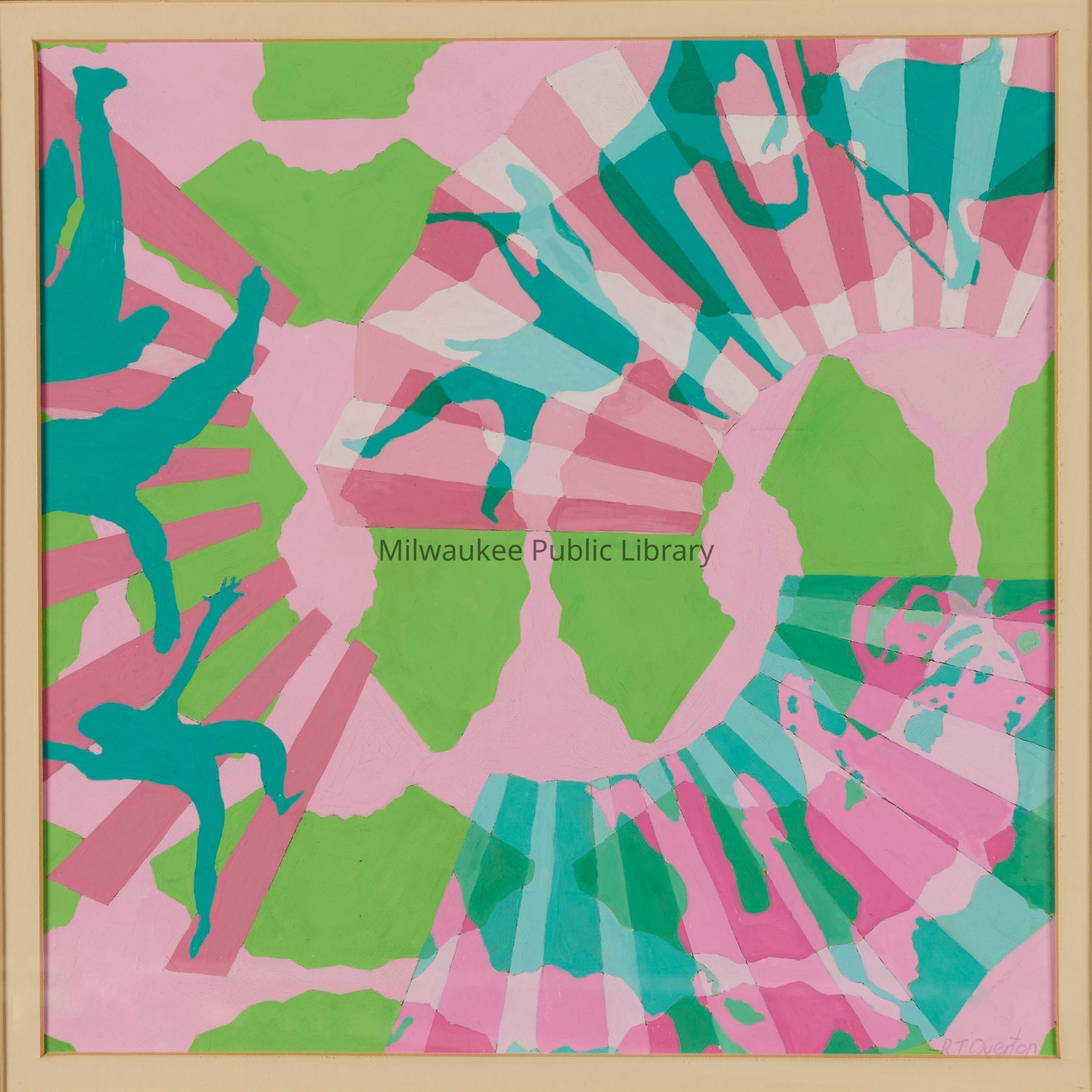 Richard Overton (1913-2010) was a visual and performing artist whose work elaborated key themes of the Black Arts Movement. The artist was a jazz musician and Ella Fitzgerald’s longtime musical director. Overton also worked at the Milwaukee Public Library. Overton’s long artistic career evidences the roots of the Black Arts Movement in Milwaukee before the 1960s, its persistence into the 21st century, and its national and international connections. The sense of "inner movement" which animates Overton's two abstract compositions reappears in Frankie B. Cole's "Red Tropical Circle (Milwaukee Conservatory)," and in the puzzle pieces of Edgar Jeter's "Girl Reading." Overton's artwork has not been widely shown, and evidences an unsung local luminary.