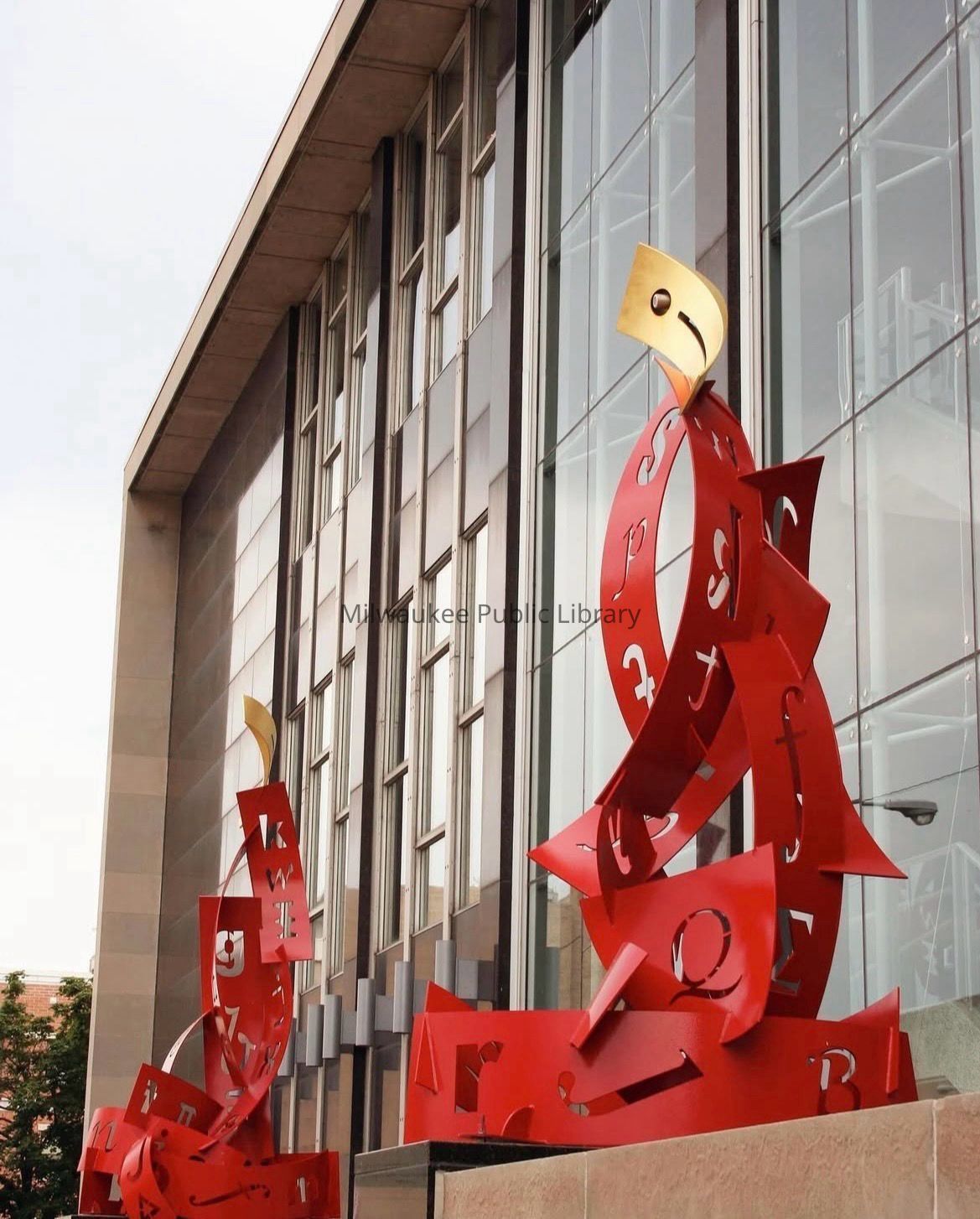 The sculptures are intended to have a sense of rising, of aspiring to greater heights. The letters of our Greco-Roman alphabet within the artwork hint at the dizzying possibilities of letter combinations which form words, which in turn form books. Other letters found are from the Greek, Phoenician, and Ojibwe alphabets. Symbols from Egyptian hieroglyphs and African Adinkra cloth are also used, as is the ampersand (@) from our present-day electronic language of the internet.