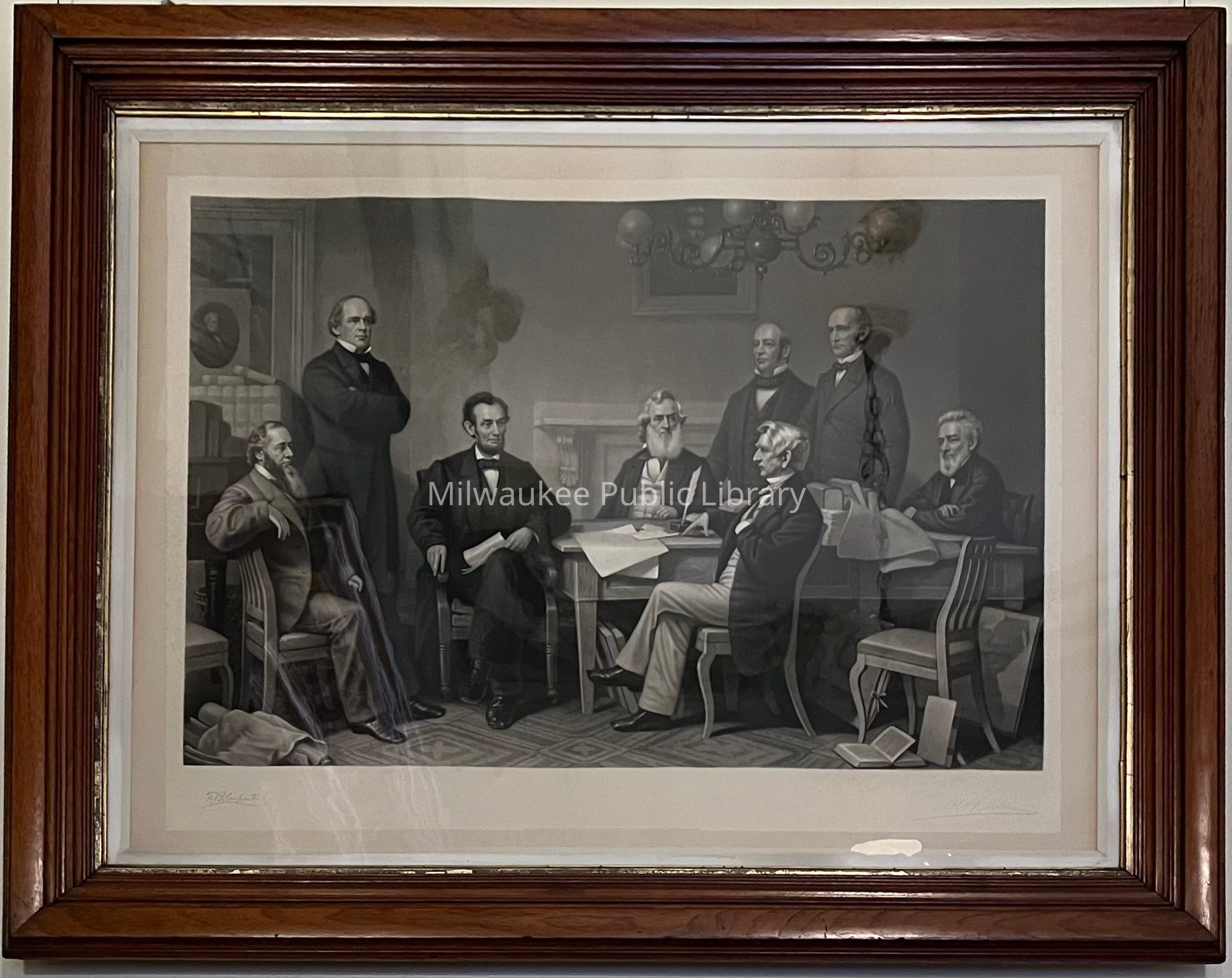 1864 is the date of the original painting "The First Reading of the Emancipation Proclamation" by Francis Bicknell Carpenter. Thereafter he commissioned Alexander Hay Ritchie to make an engraving of the painting.
