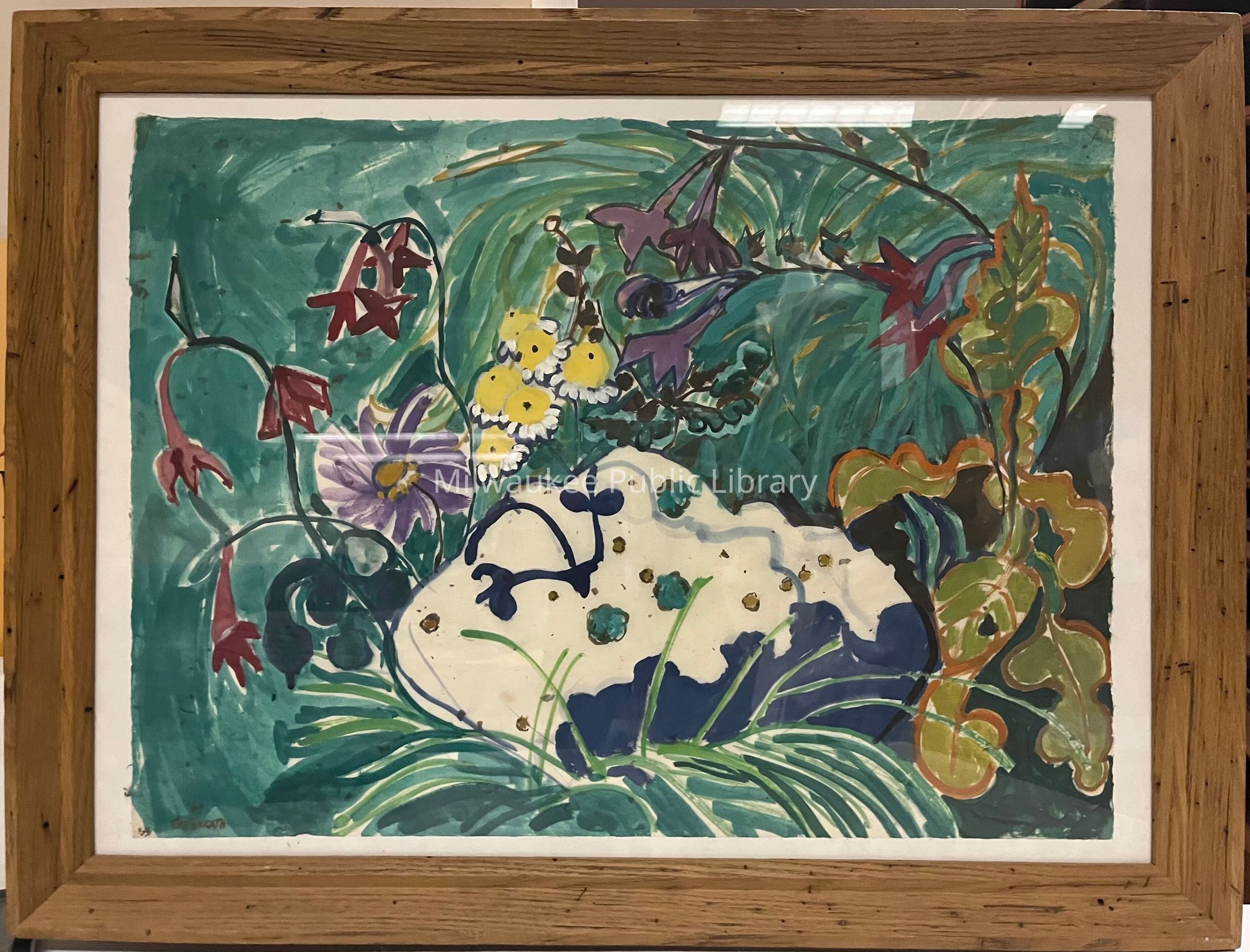 The title is also indicated on a gallery exhibition card affixed to the back of the work.