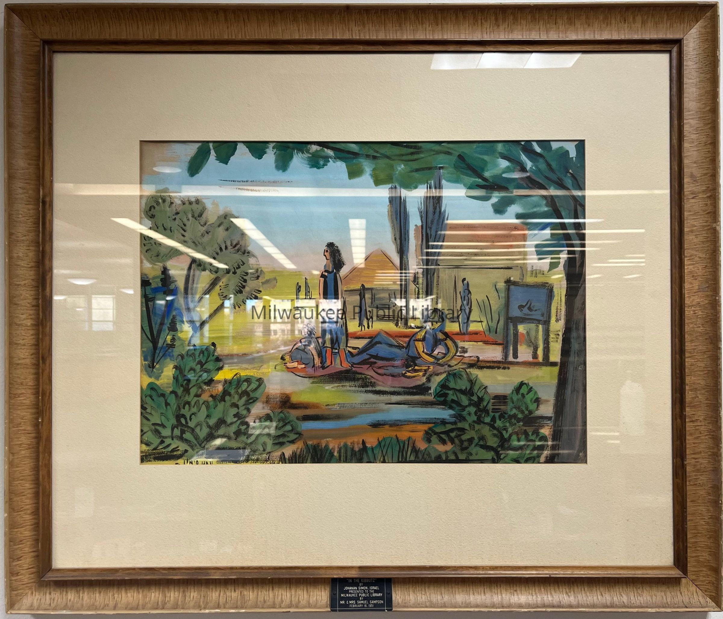 According to the 2/17/1951 MJ, "[t]he Sampsons bought the paintings from a collection sent to the United States about two years ago and exhibited in some 30 states." The other painting referenced is "Village in Galilia" by Moshe Matus, at #4 in this inventory. A copy of the article is attached to the accession record at 1951.1.