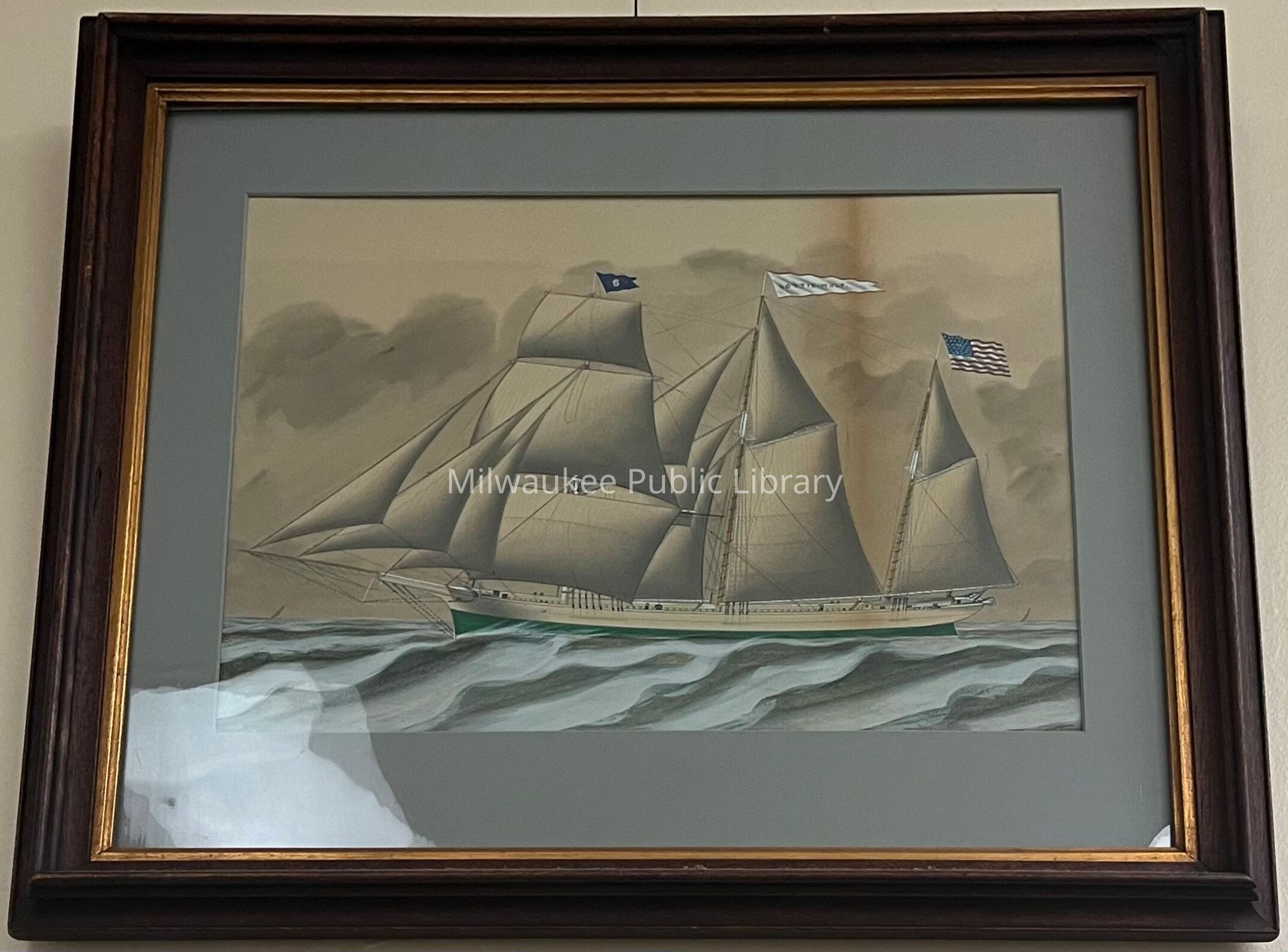 Three masted Bark-Schooner, 146’ long, 27’ beam, built in Green Bay 1866, by William Wolf. Bark 1868-1878, Schooner 1879-1891. Long list of near disasters.Collection