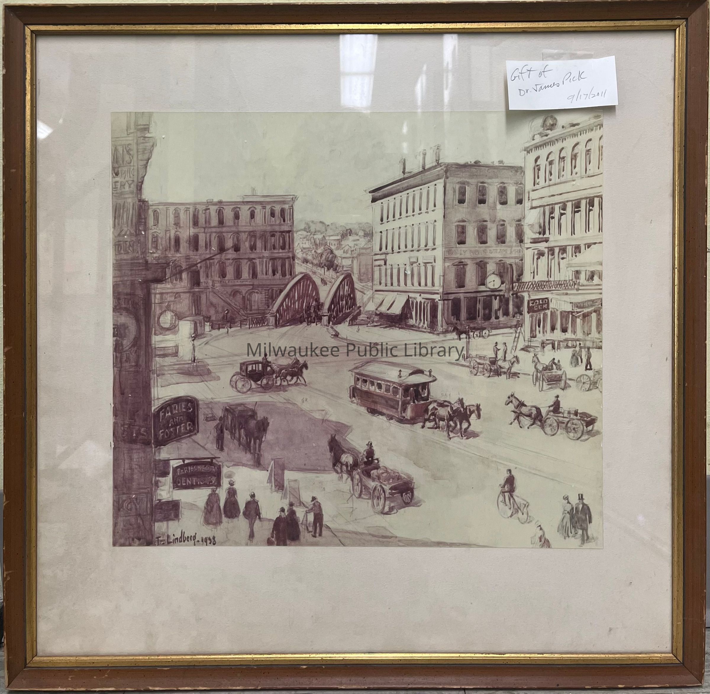 Descriptive title written on backing paper says: "Milwaukee Downtown Scene - 1870s. Water St. at Mason St."