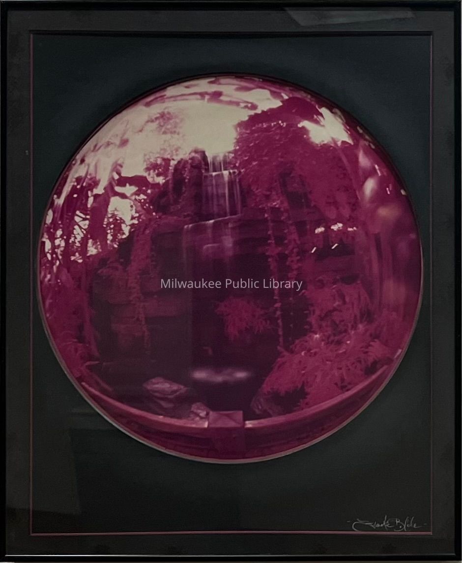 “Red Tropical Circle" exemplifies Cole’s innovative technique of “us[ing] my camera like a paint brush” to convey a “beautiful trip of emotions, impressions and moods of people, places and things.” In this composition, Cole's camera artistry creates a sense of "inner movement" shared by Richard Overton's two abstract compositions and the puzzle pieces of Edgar Jeter's "Girl Reading." Picturing a waterfall at the Mitchell Park Domes (formerly Milwaukee Conservatory), "Red Tropical Circle" joins other works in celebrating the places and public institutions that help connect us and anchor our social infrastructure: the library (Edgar Jeter’s “Girl Reading”), the zoo (Gerald Coleman’s “Pride of the Bamboo Forest,” based on the gorillas at the Milwaukee County Zoo), and neighborhoods and front stoops (Sylvester Sims’s “Brothers” and its look back to the “warmth, vigor and camaraderie” of 'Old Walnut Street').Collection
