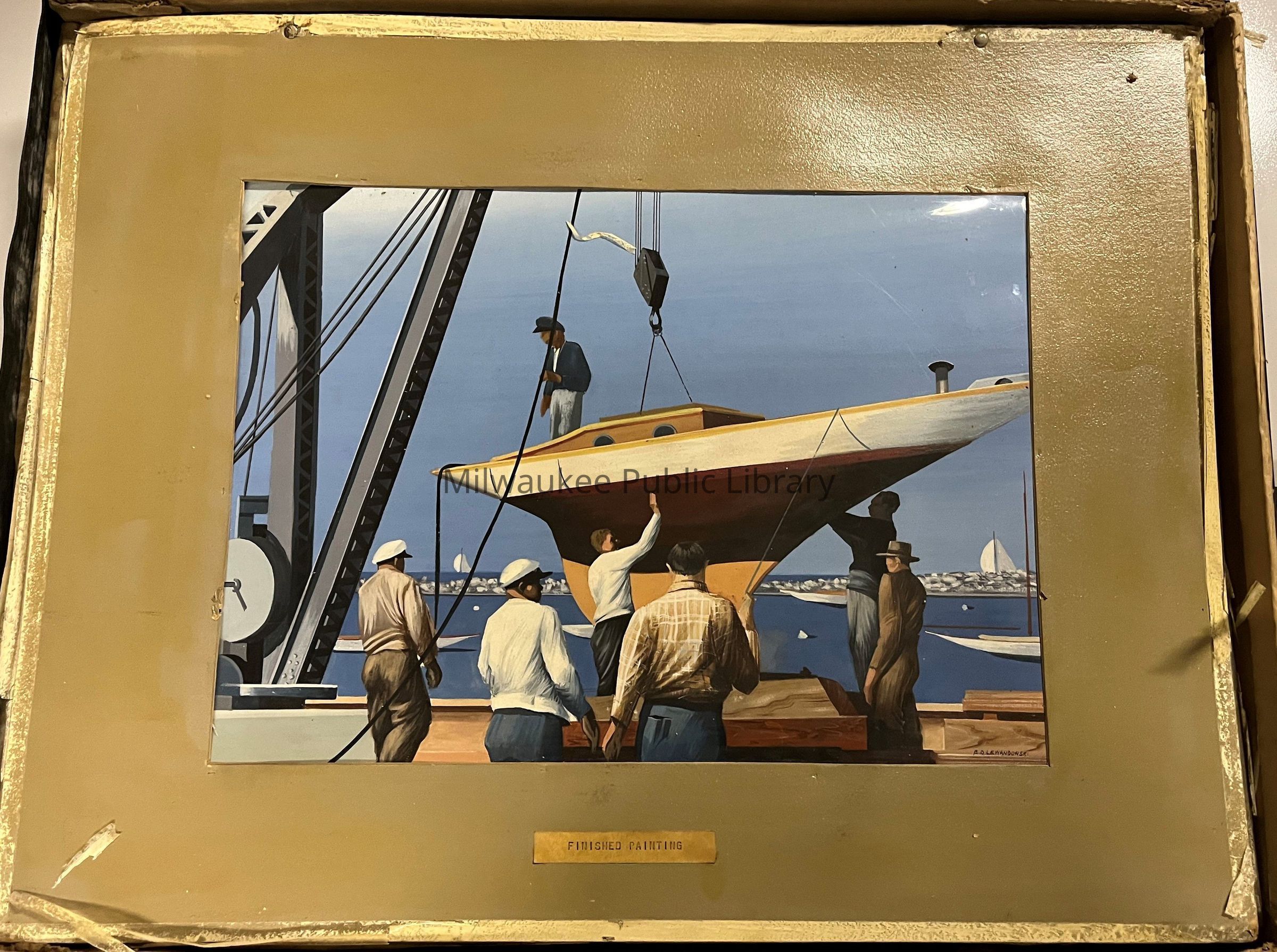 Board #7: Painting one-half finished showing additional detail, especially in the derrick