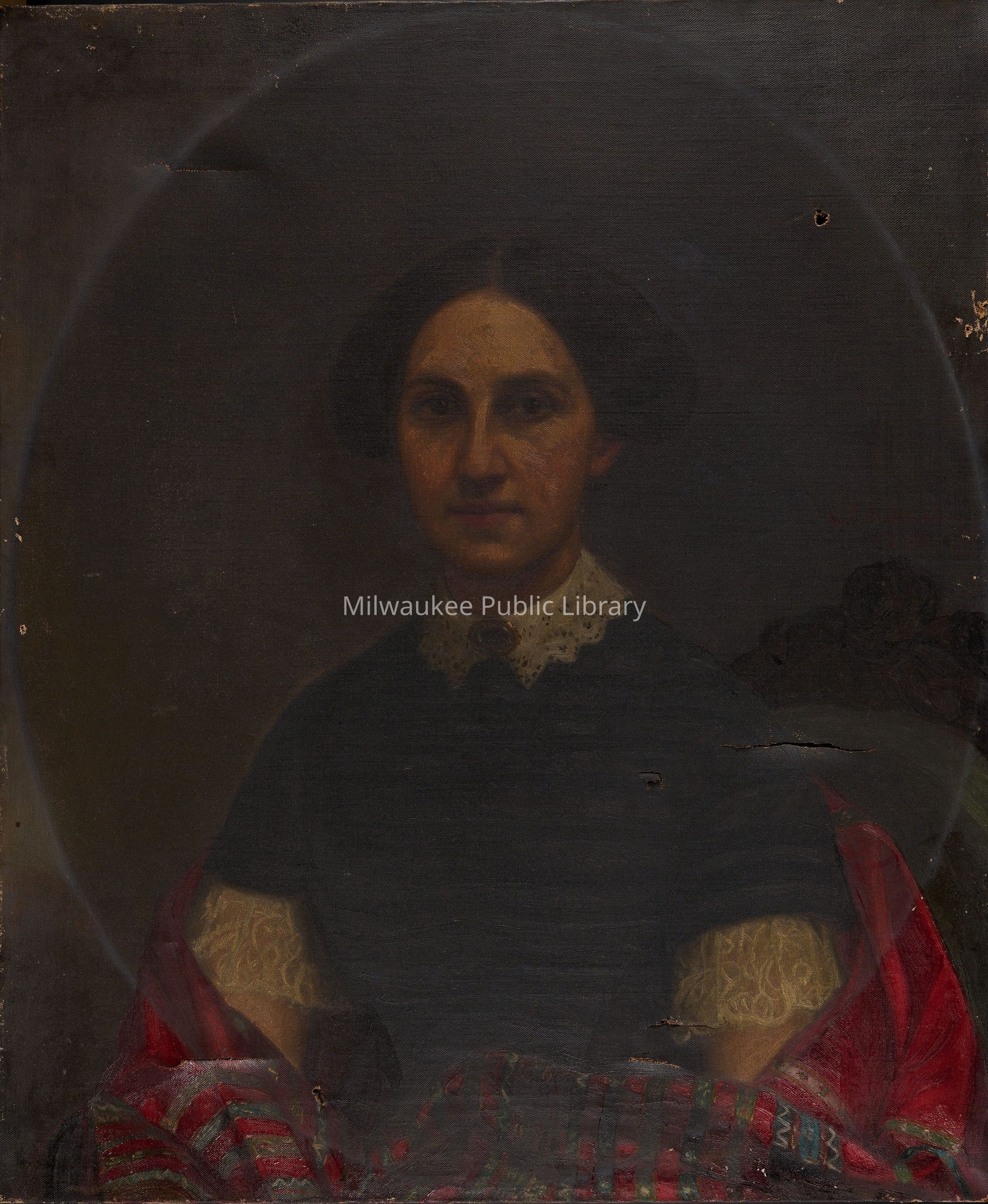The subject has not been identified, but may be Mrs. Caroline Ross (Granger) of Muskingum Co. (Zanesville), Ohio, who was the mother of Maj. Charles H. Ross, for whom there is a escutcheon with the grouping of G.P.A. Healy portraits. The woman in this portrait resembles the Mrs. Ross photographed in an early daguerreotype of the Ross family dated 1843 (see attached).