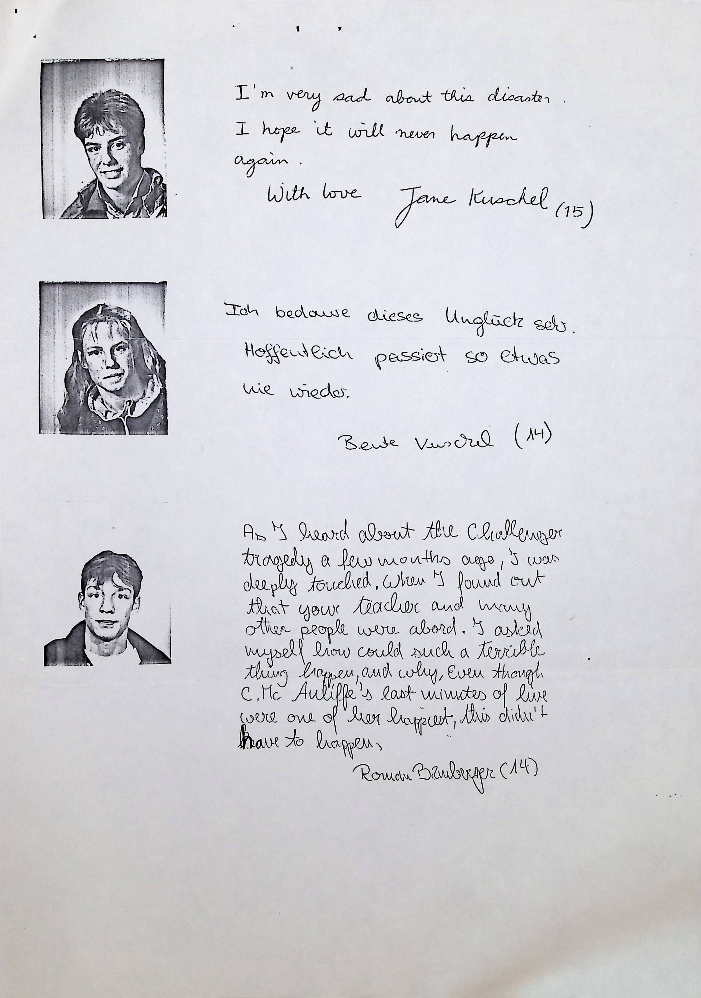 International correspondence from Germany expressing condolences for death of Christa McAuliffeCollection