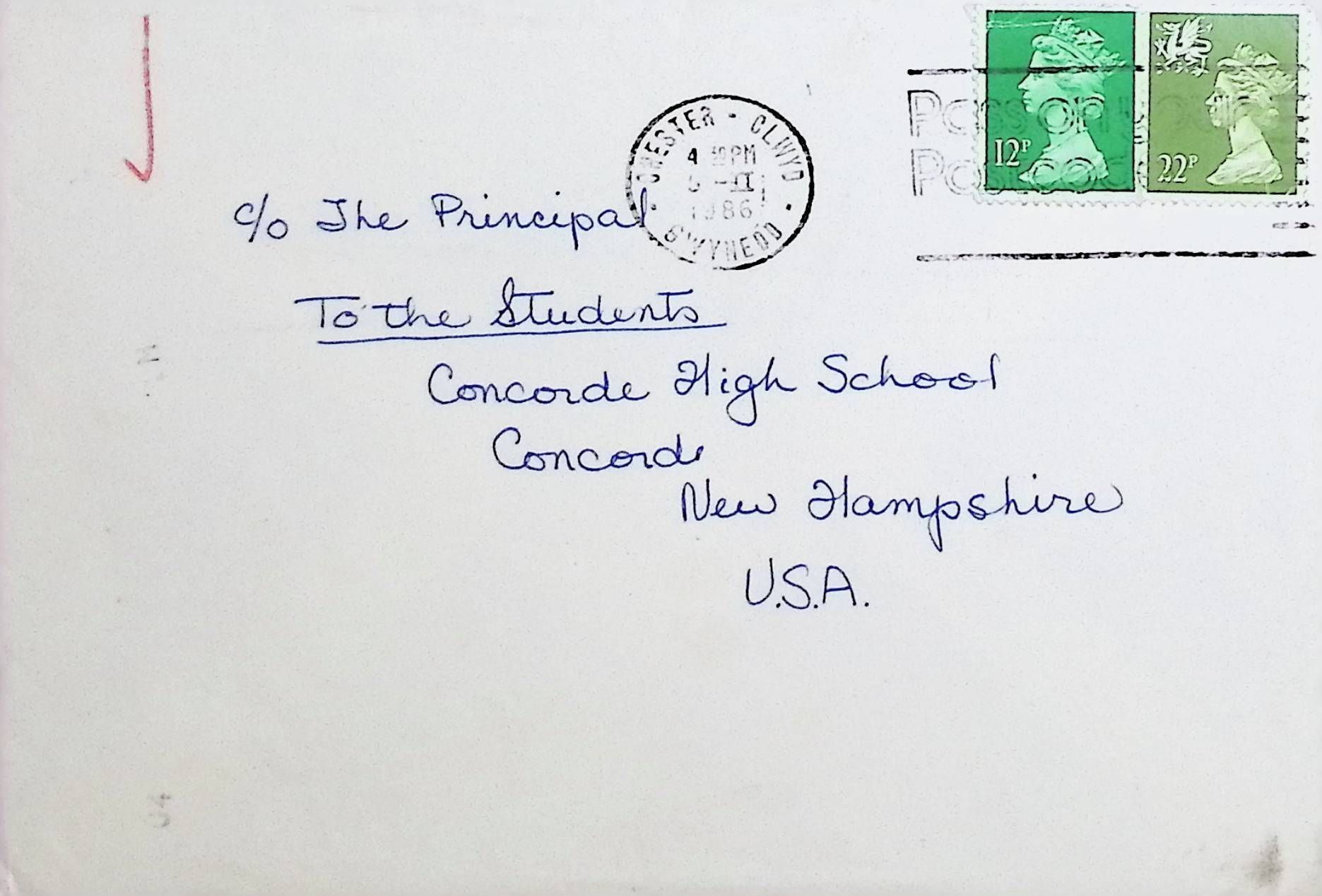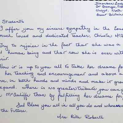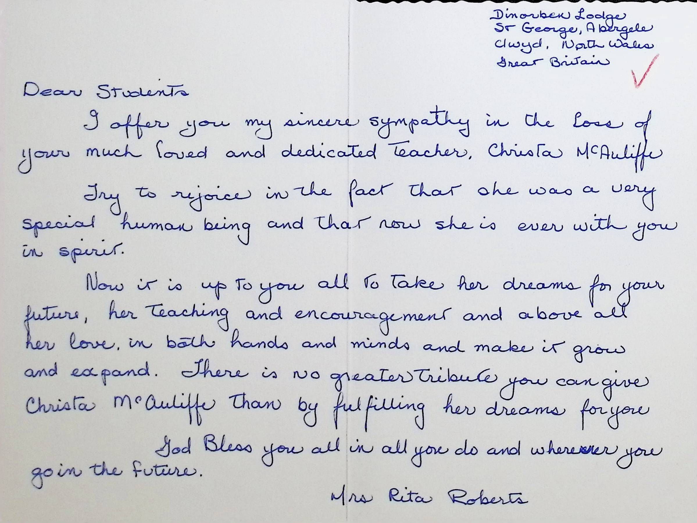 Sympathy Card addressed to Students of Concord High School from Rita Roberts