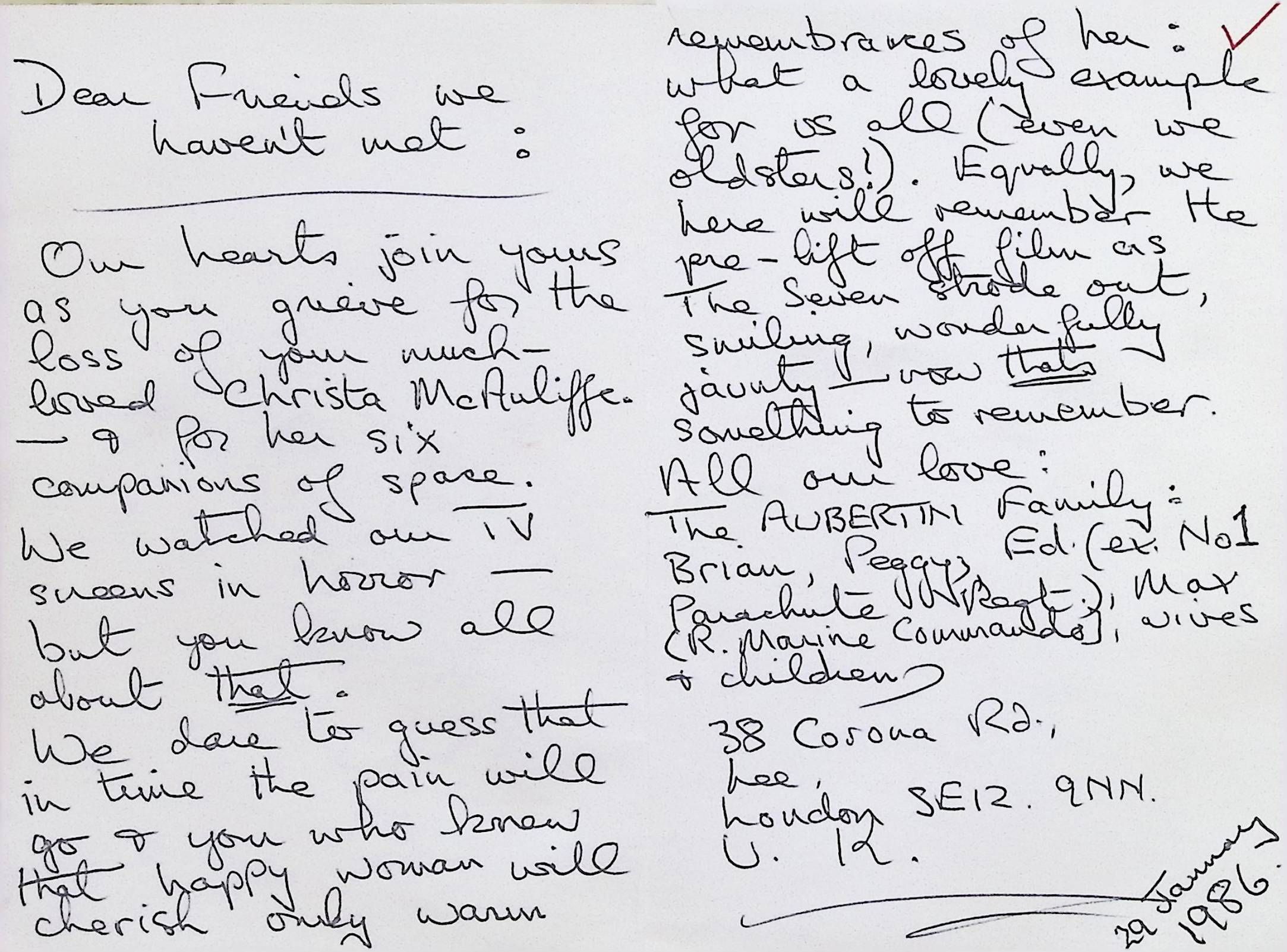 Card to "Dear Friends we haven't met" from the Aubertin Family (England) Dated January 29, 1986