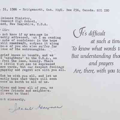 Sympathy Card to The Science Minister of Concord High School from Isawe Haynes