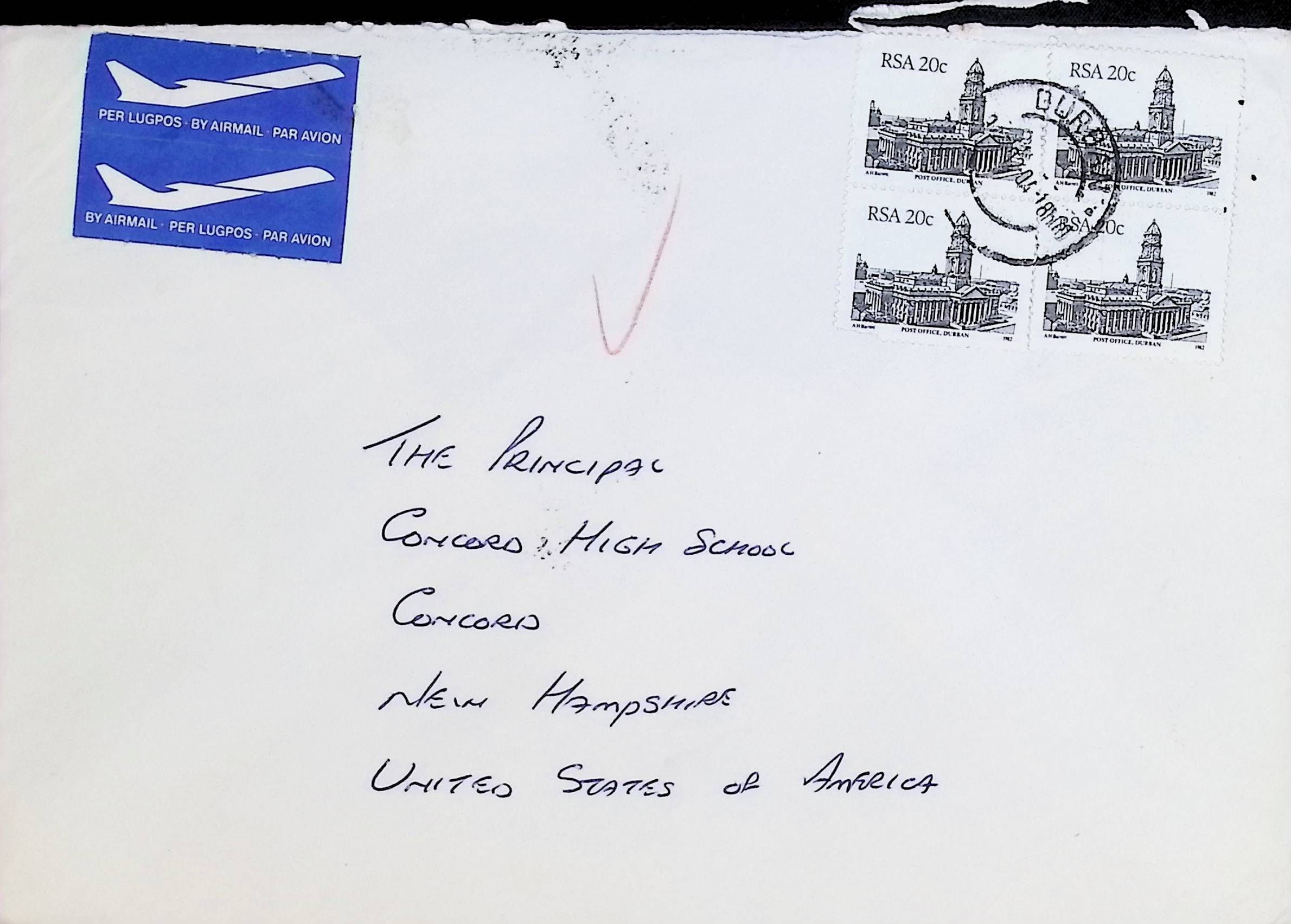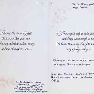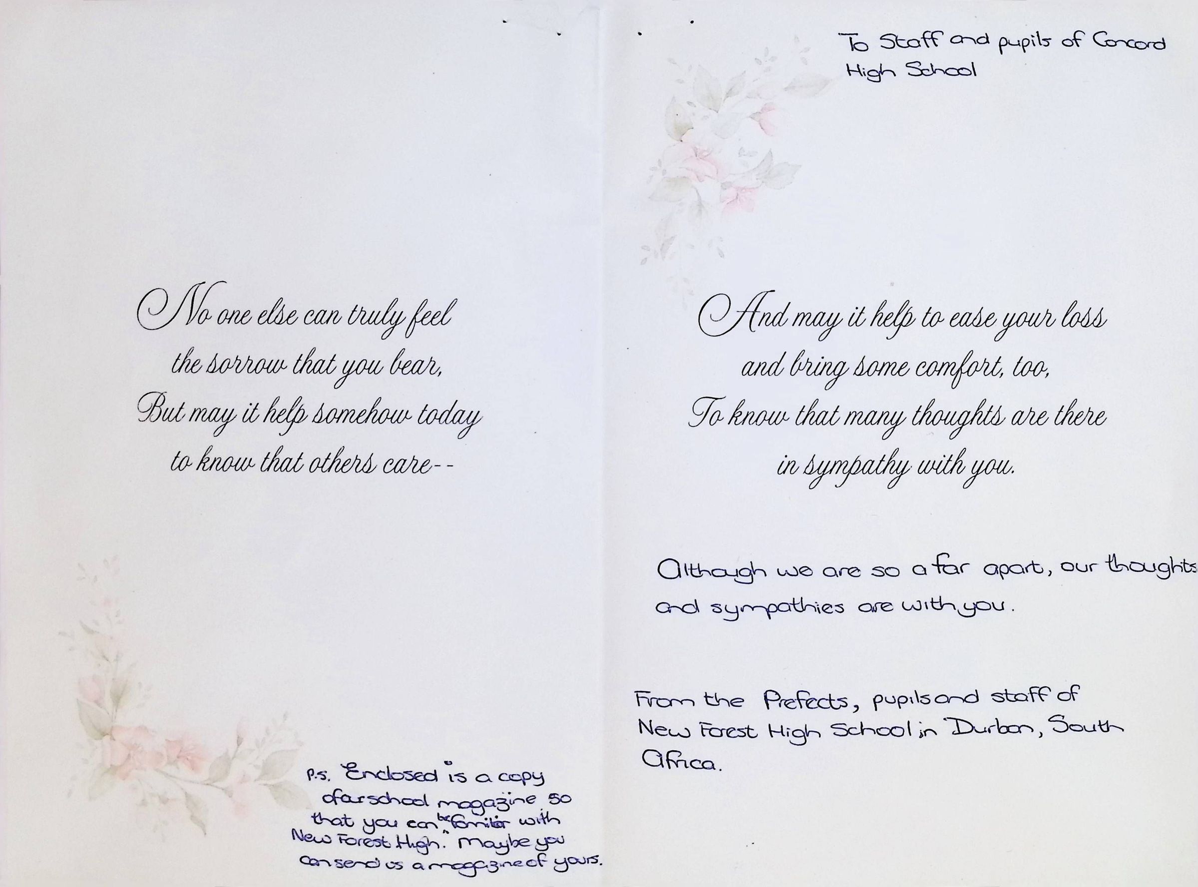 Sympathy Card to Concord High School from New Forest High School (South Africa)