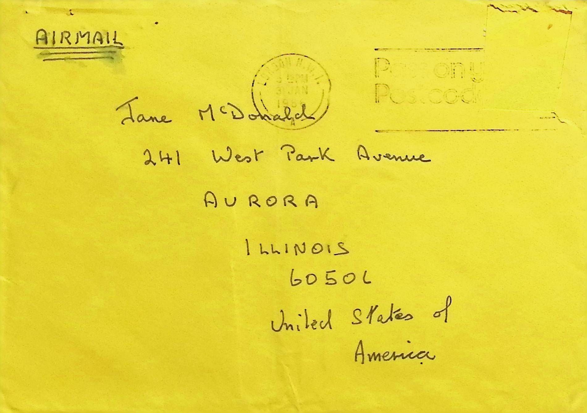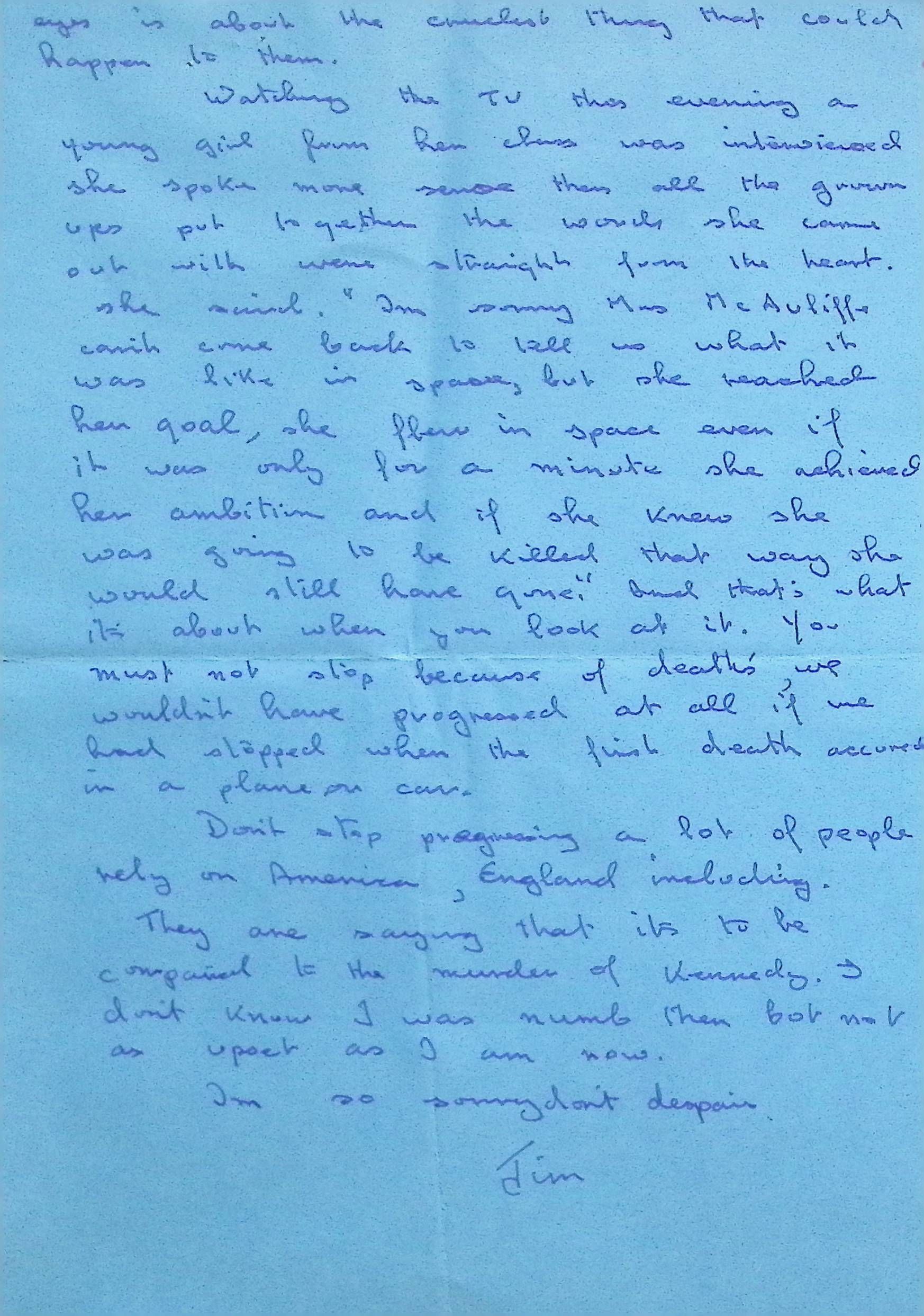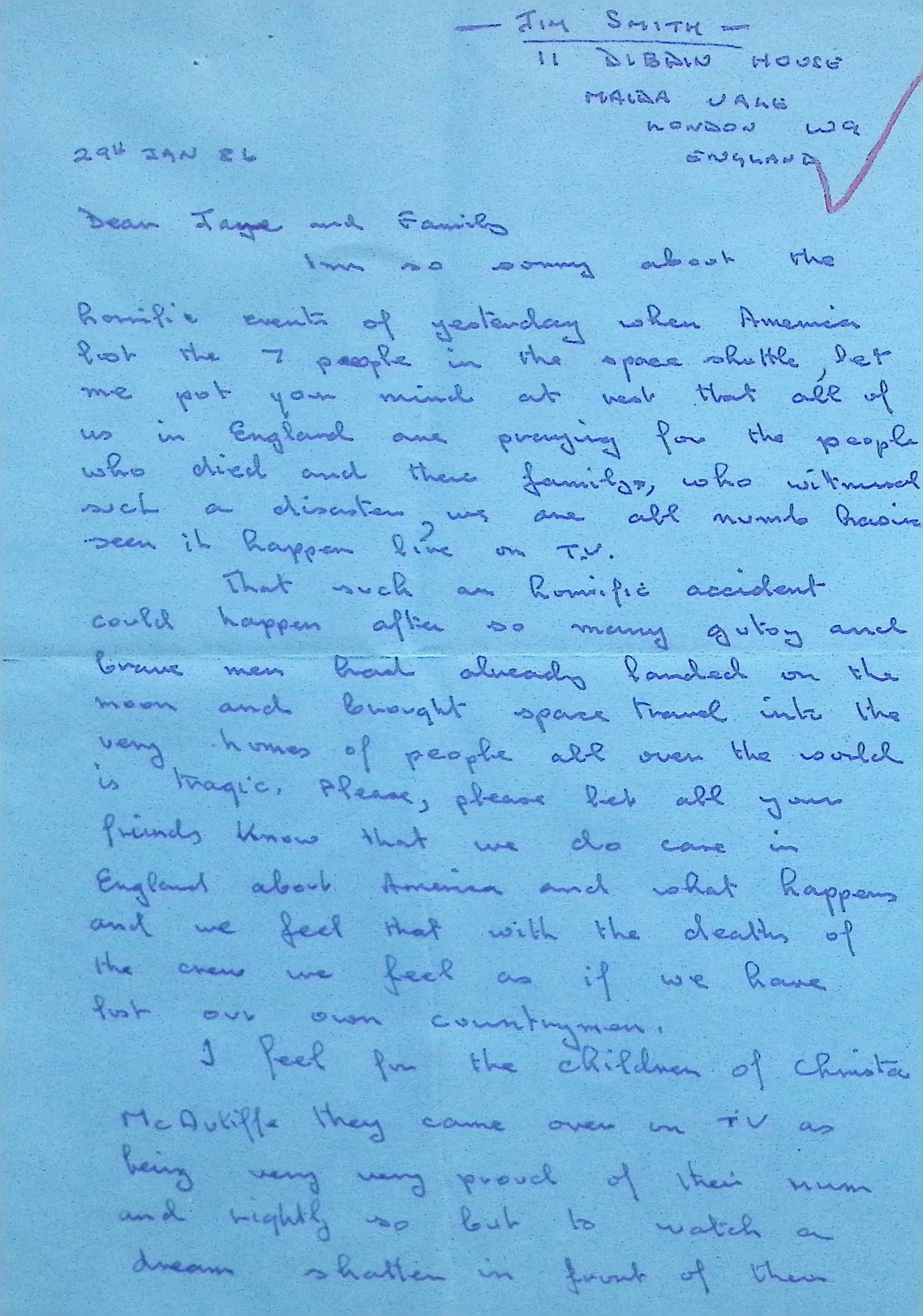 Attached: Handwritten Letter to Jane McDonald and Family from Jim Smith