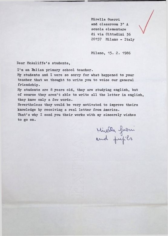 Typed Letter to Christa McAuliffe's students from Mirella Guerri