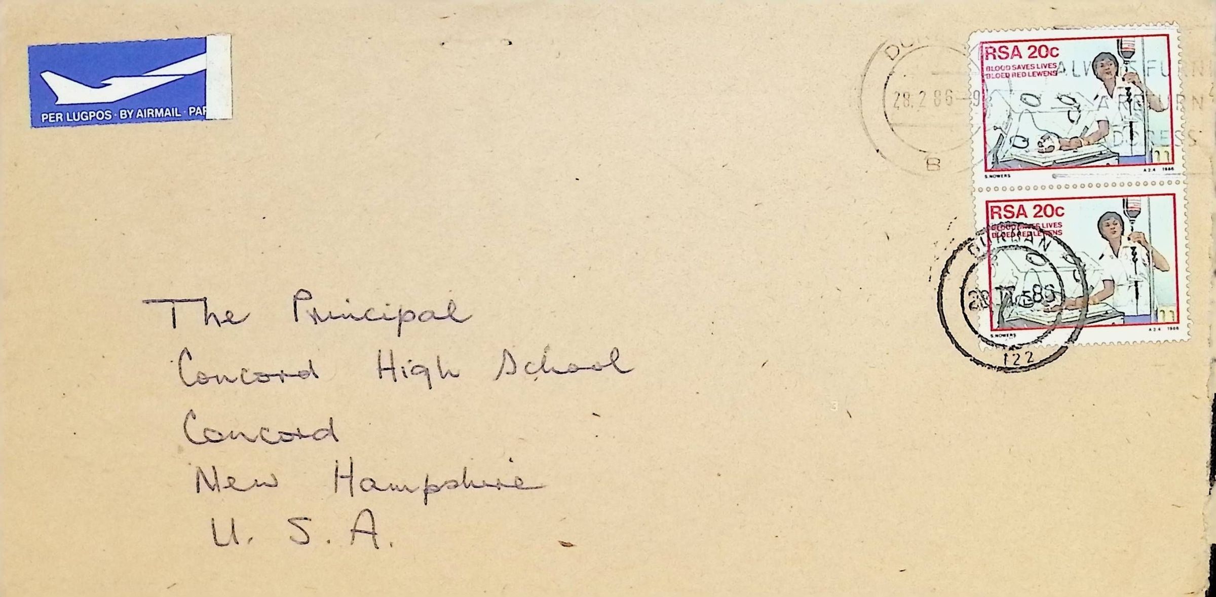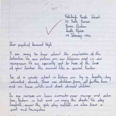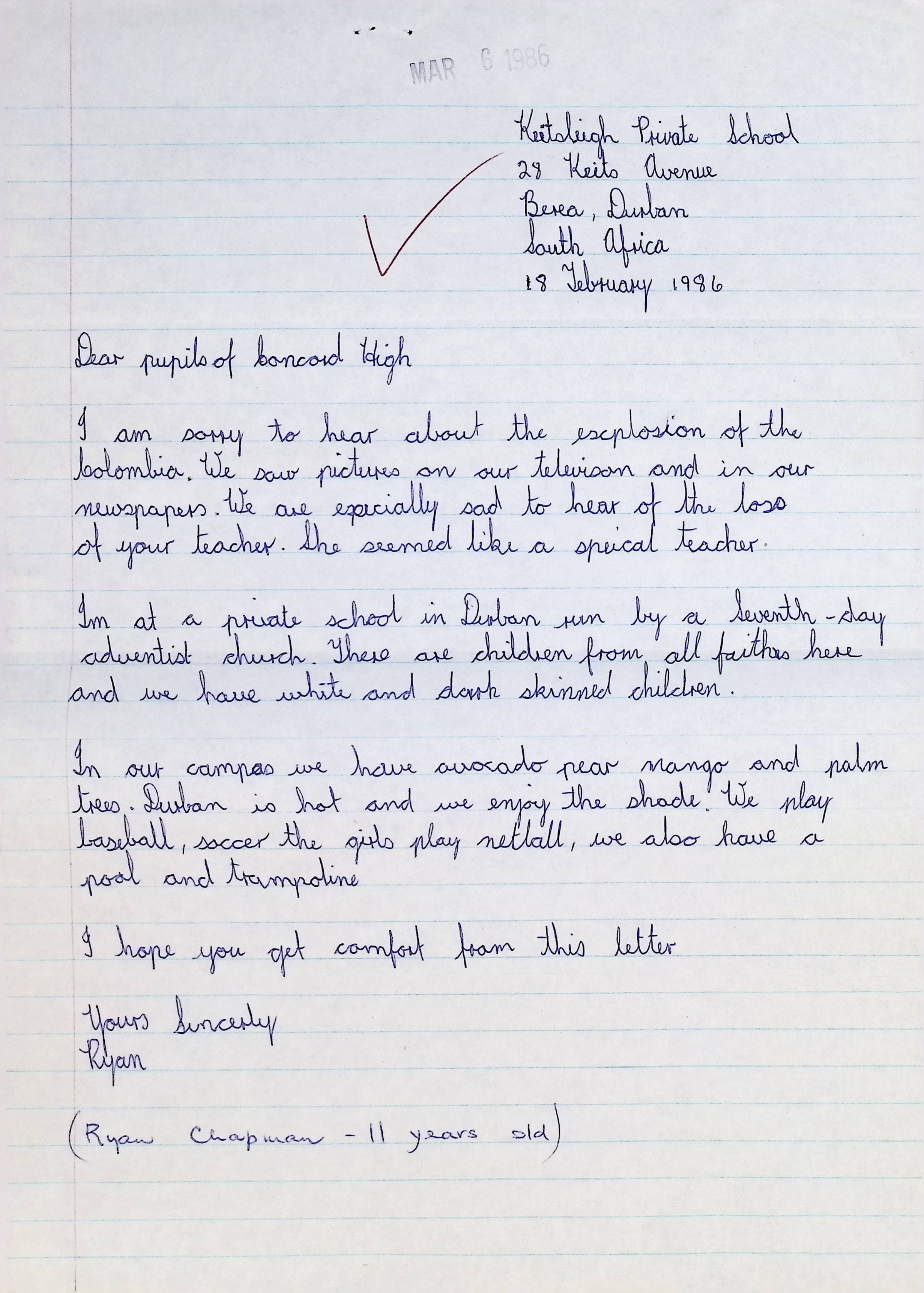 Letter to Concord High School from Ryan Chapman at Keitsleigh Private School (South Africa)