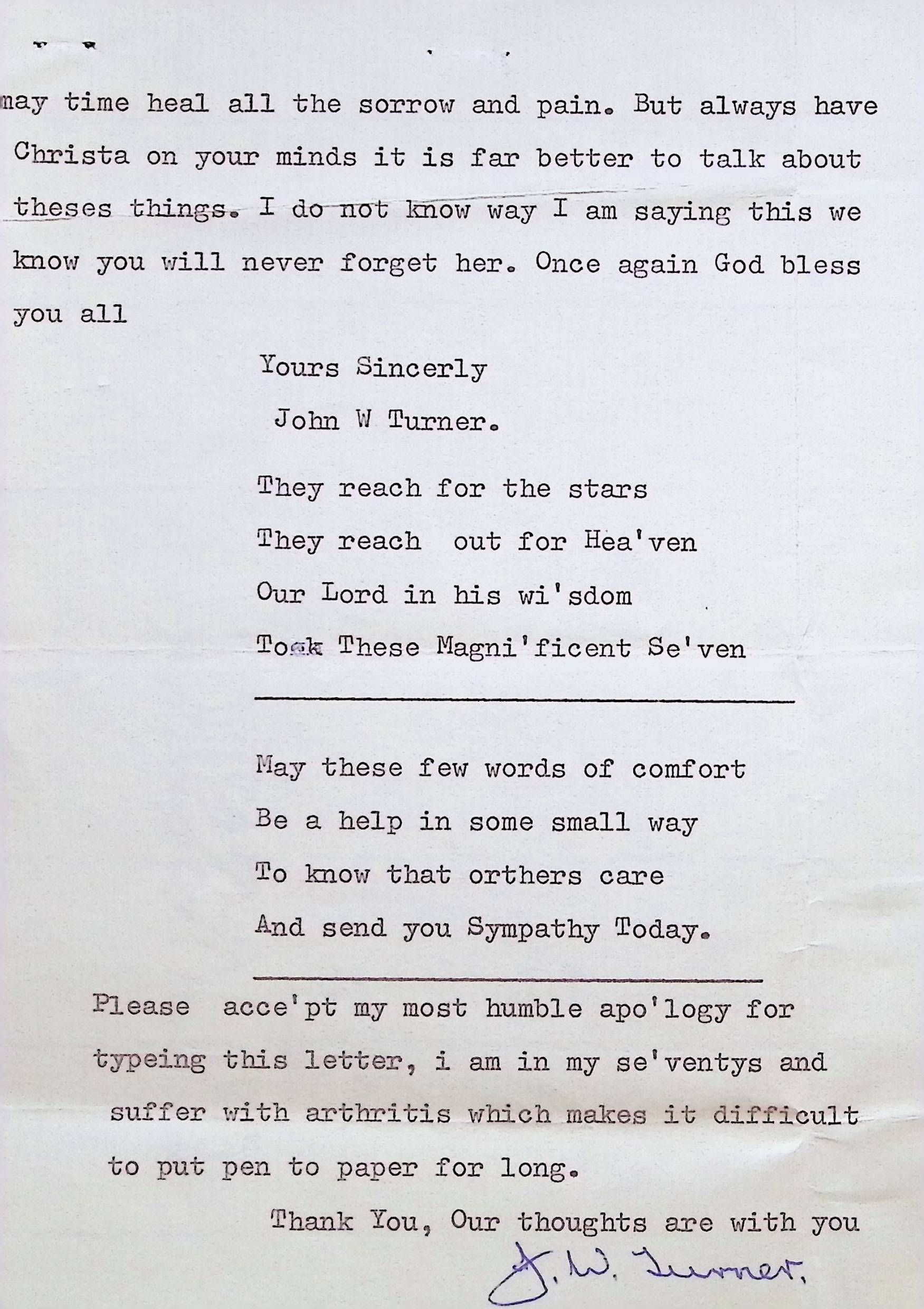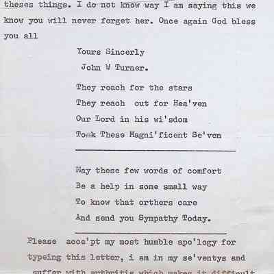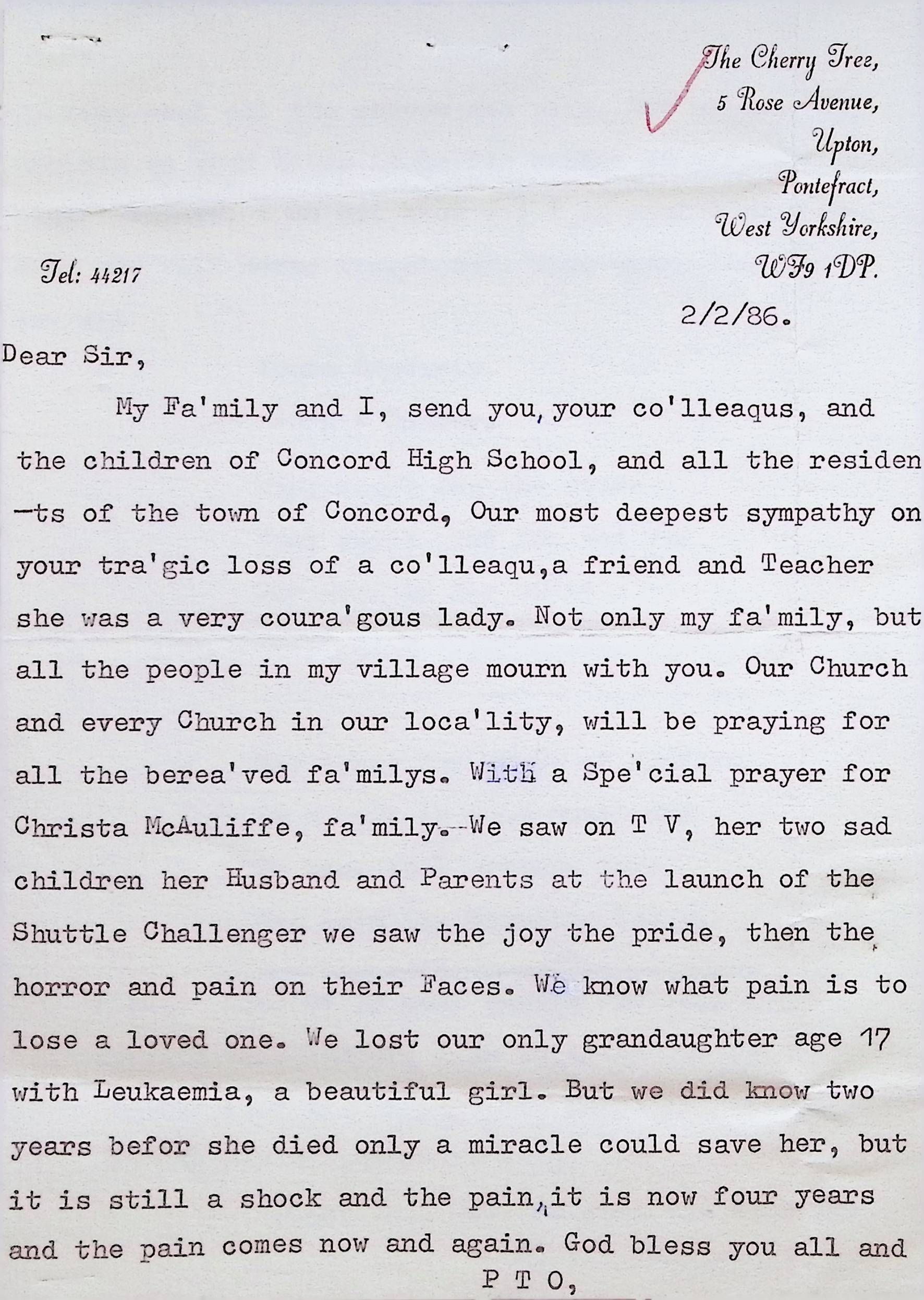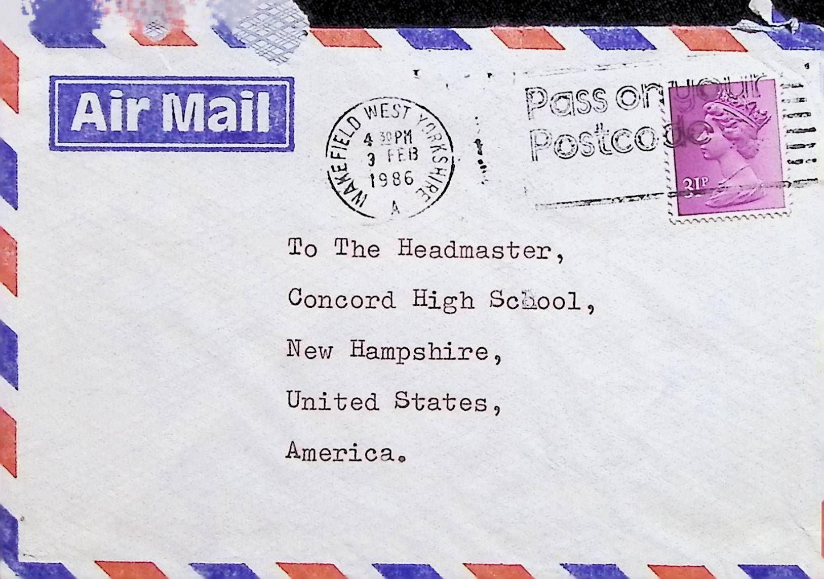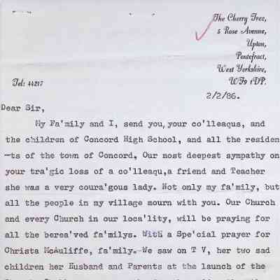 Typed Letter to the Headmaster of Concord High School from John Turner (England)