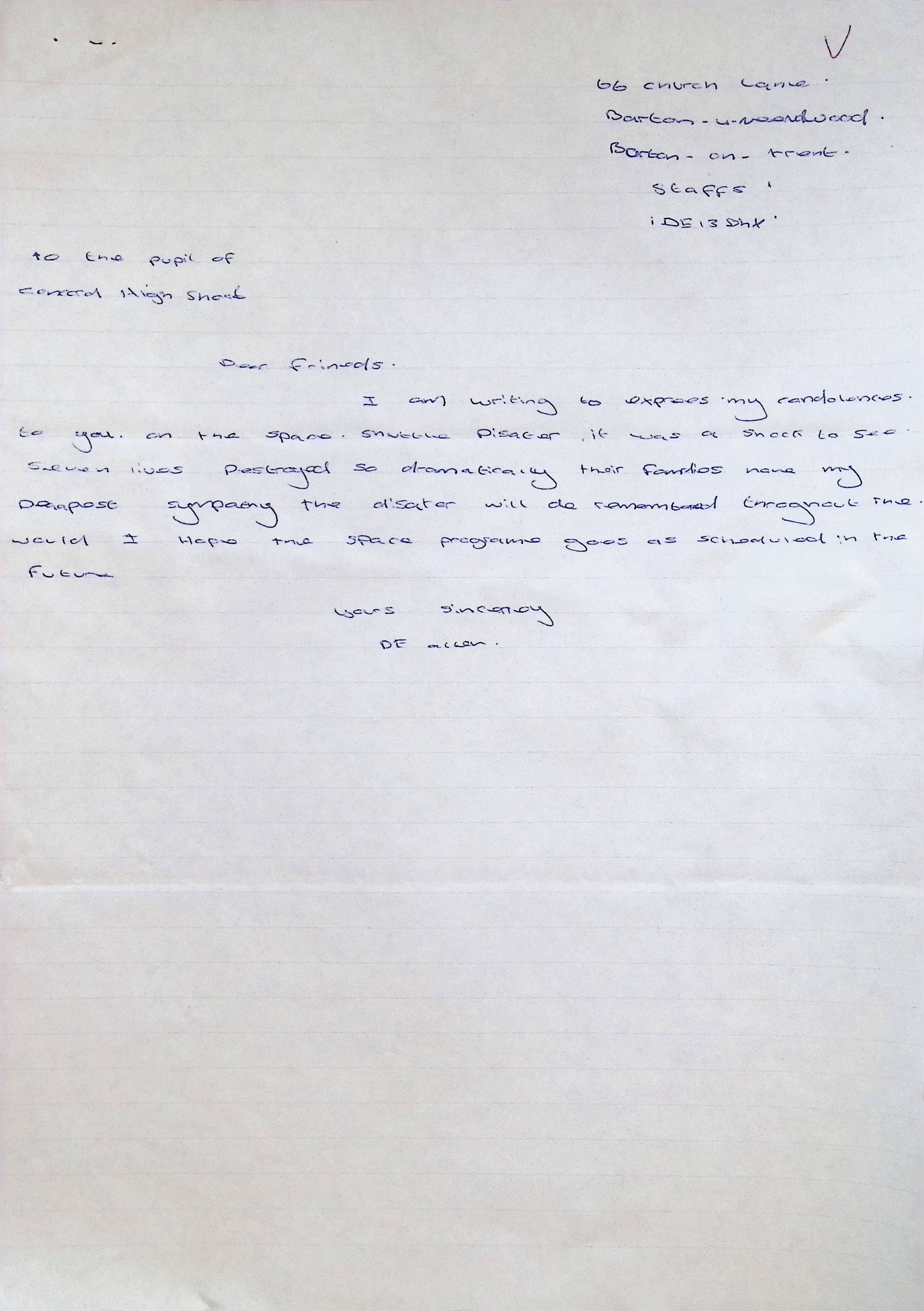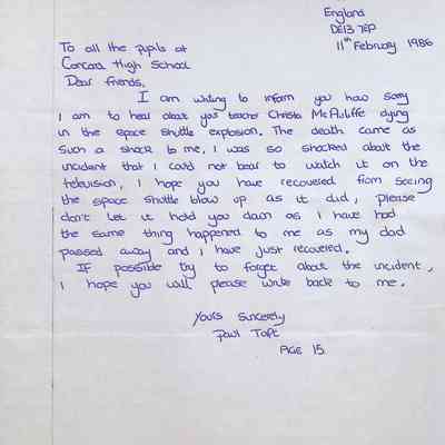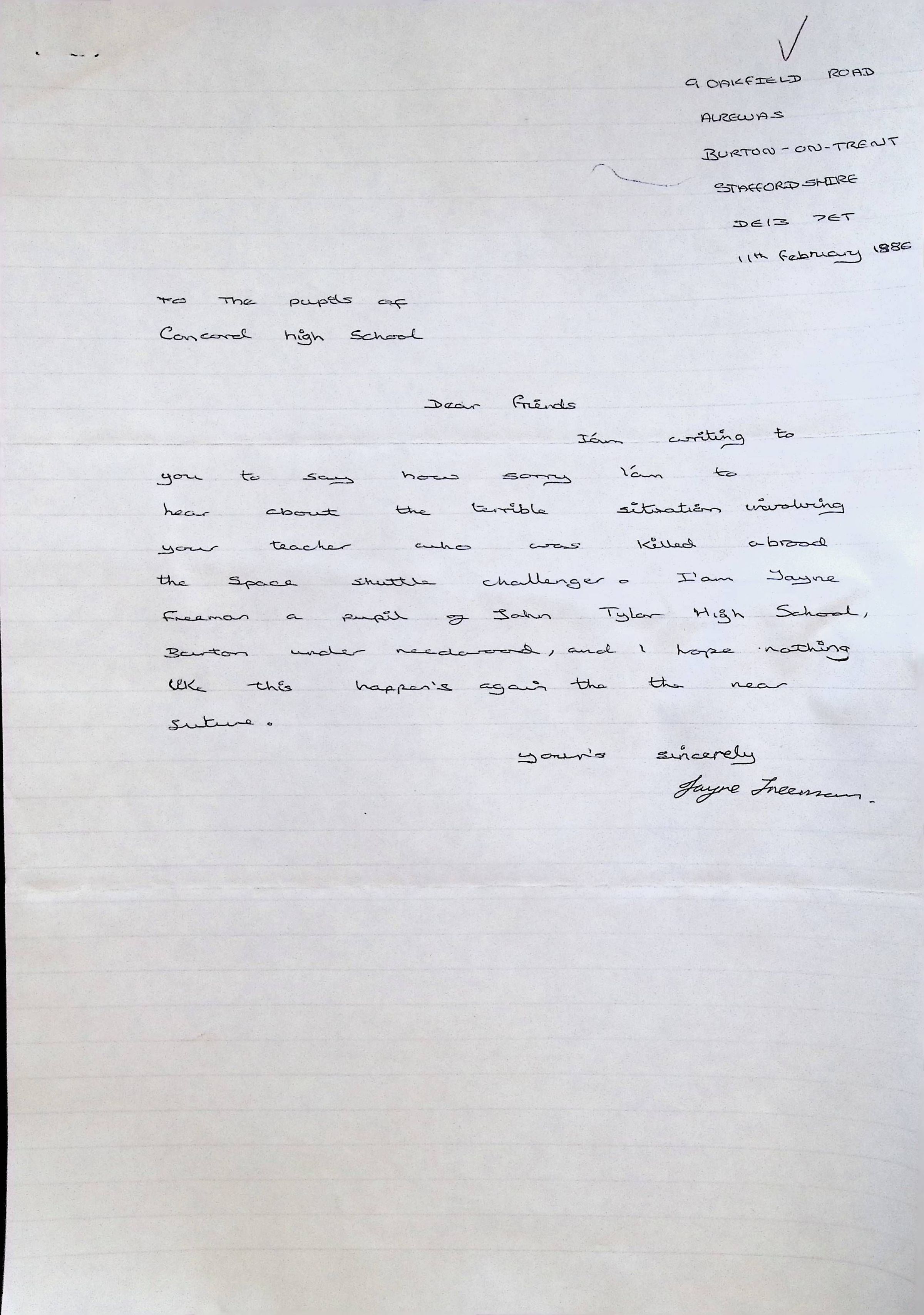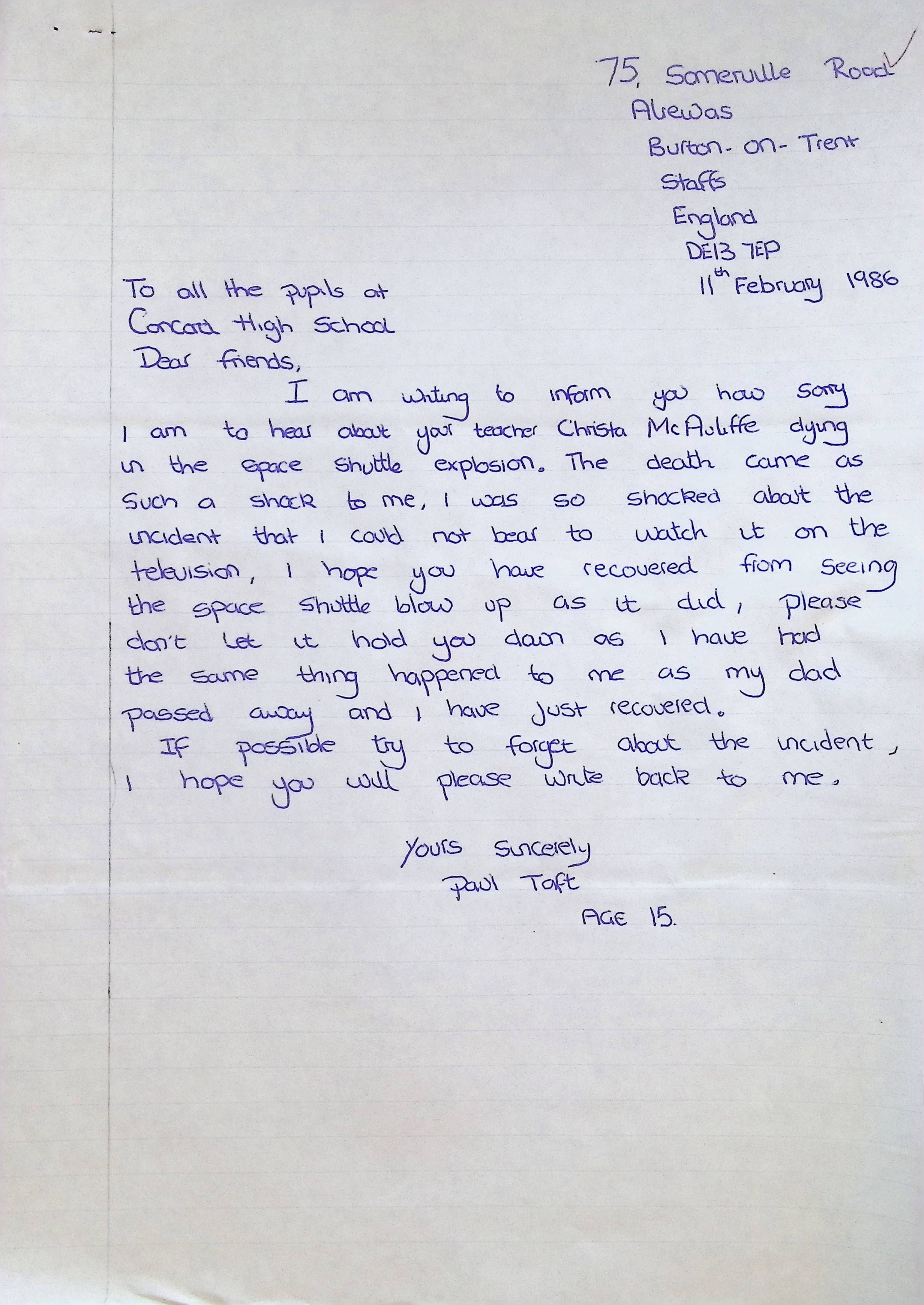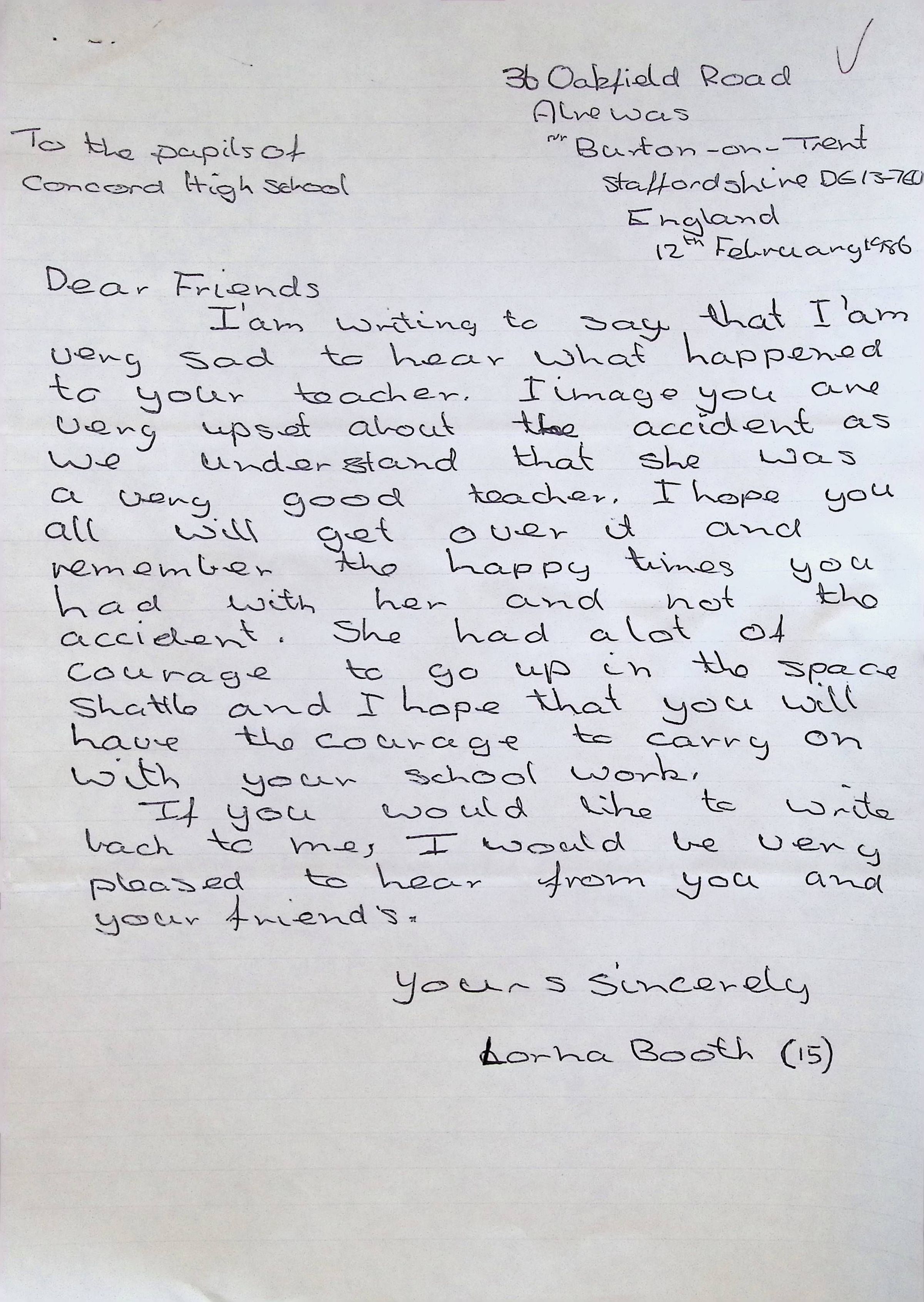 Handwritten Letter to Charles Foley (Principal of Concord High School) from Denise S. Schuek from John Taylor High School