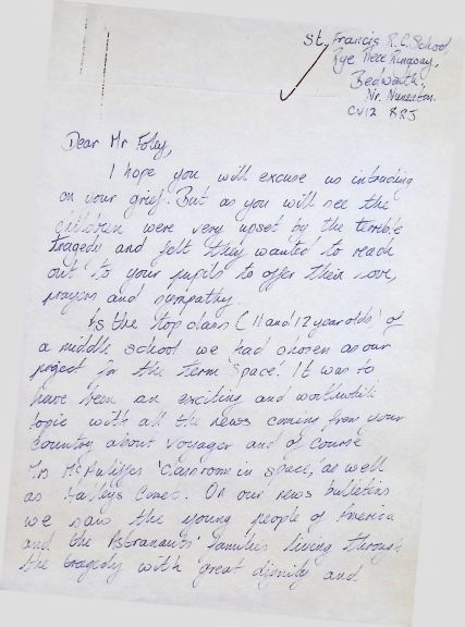 Handwritten Letter to Charles Foley (Principal of Concord High School) from Helen Carter from St. Francis R.C. School (England)