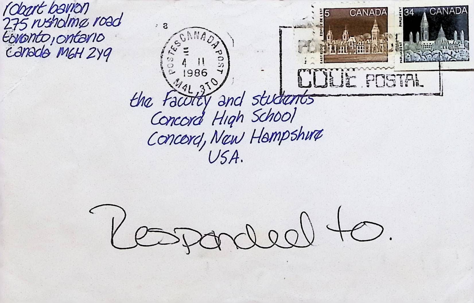 Attached: Envelope addressed to the Faculty and Students of Concord High School
