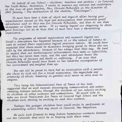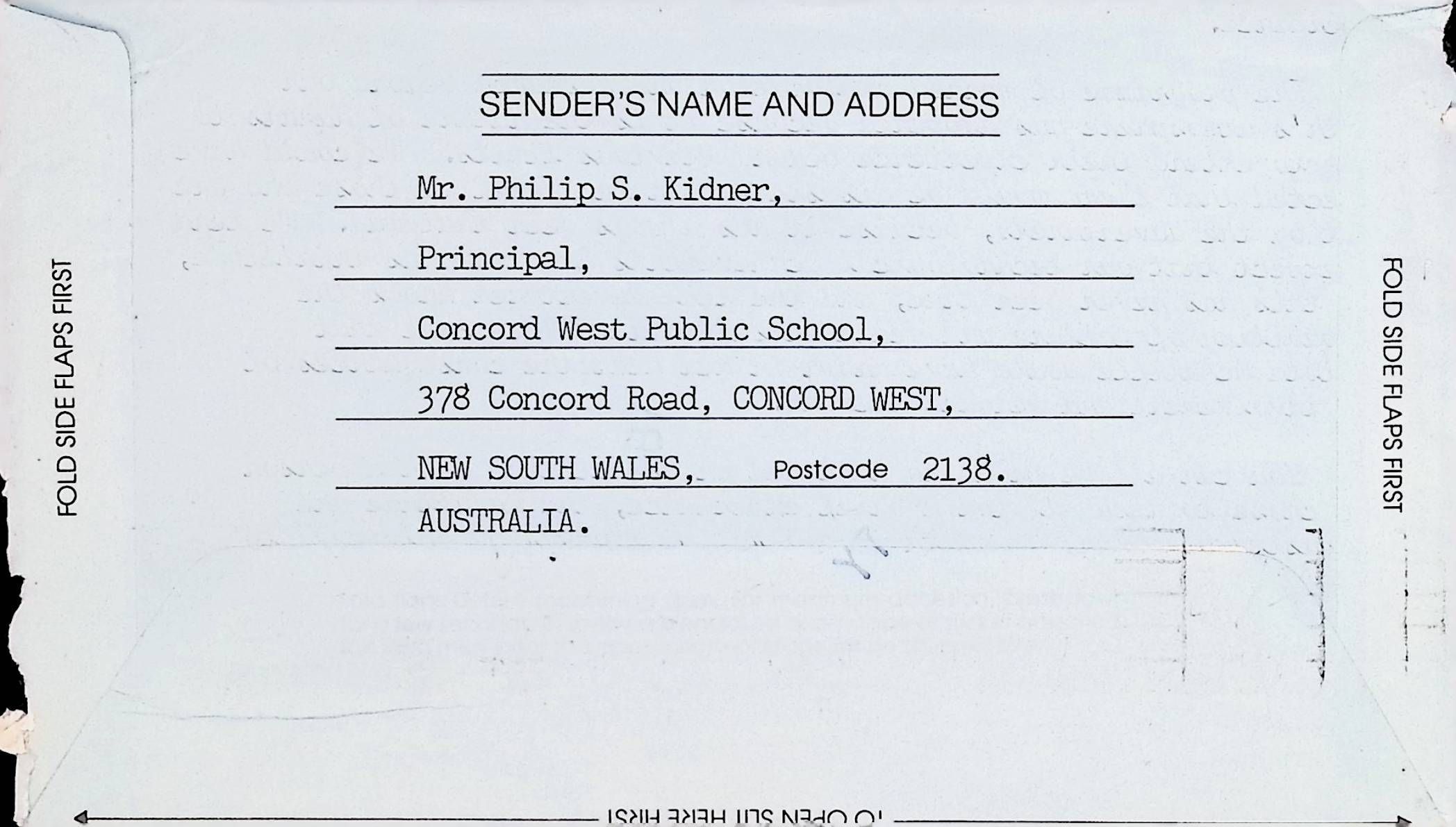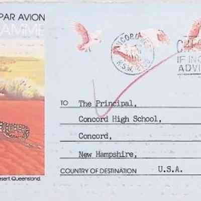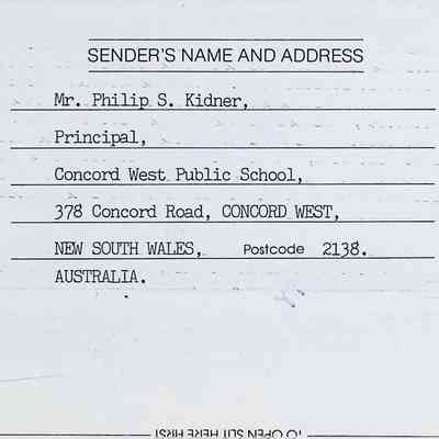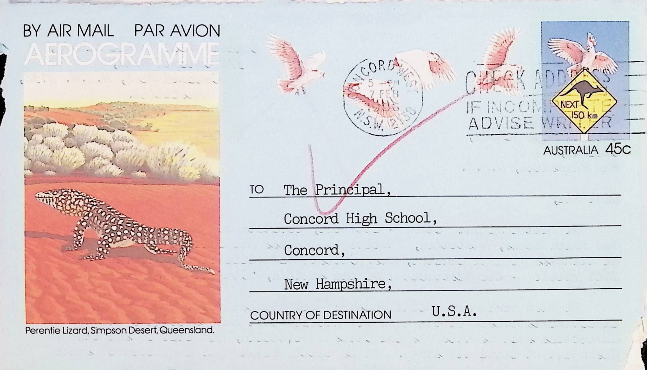 Aerogramme Letter to Concord High School (Principal) from Philip S. Kidner (Australia)