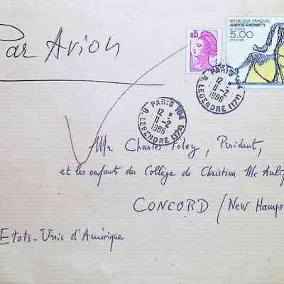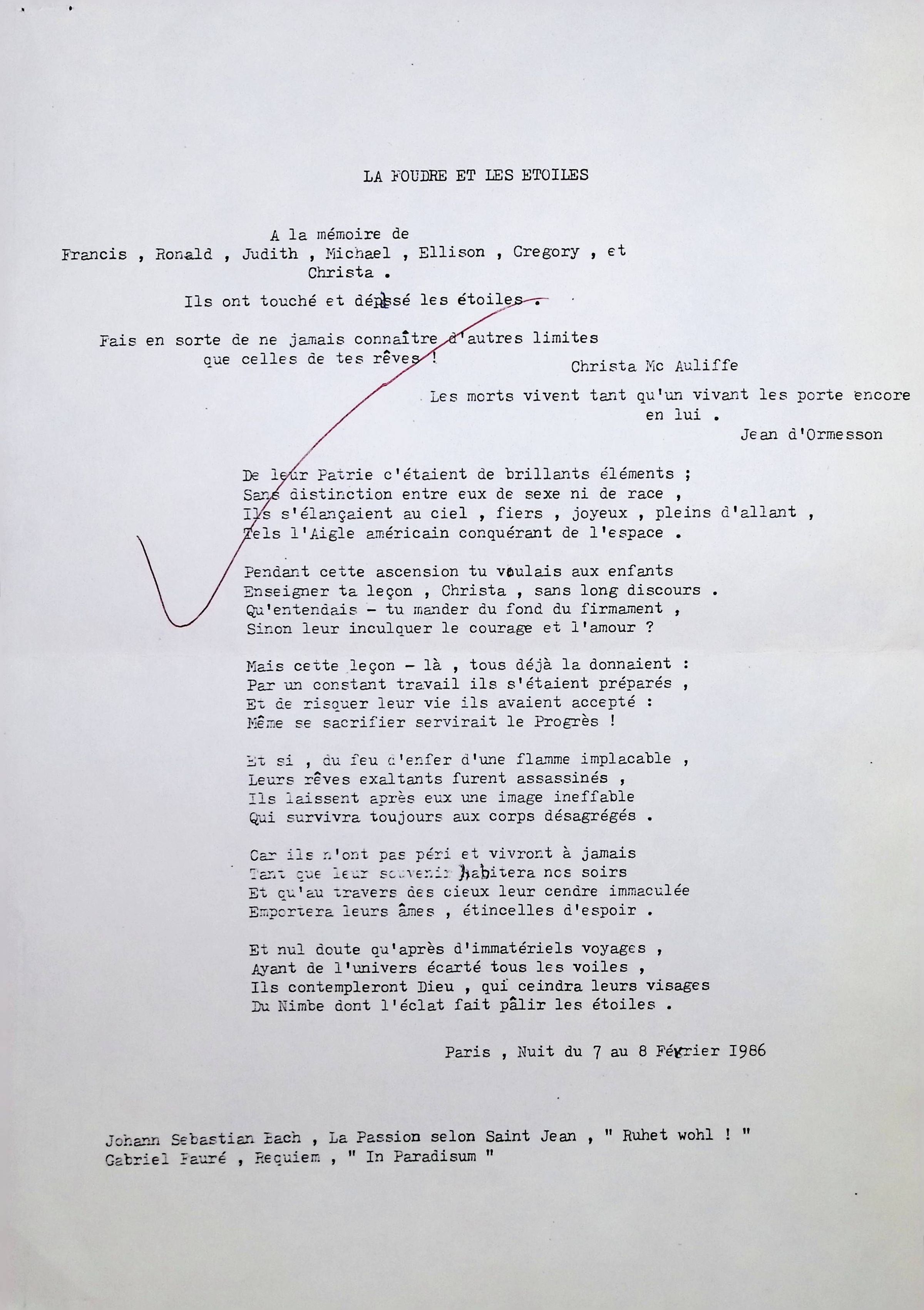 Typed Correspondence of poem in memoriam of the Challenger crew