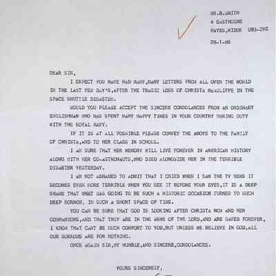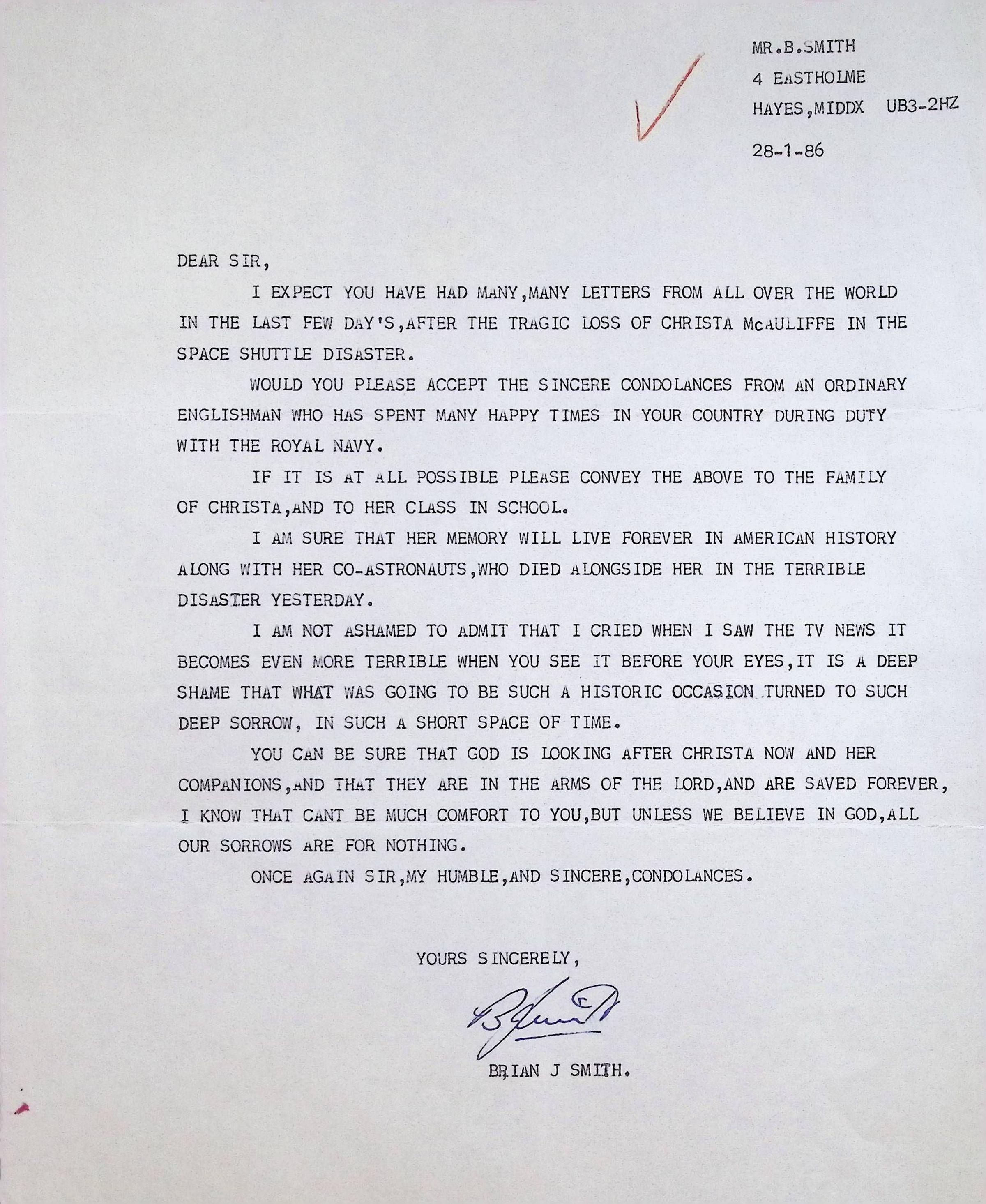 Typed Letter from Brian Smith (England) Dated January 28, 1986