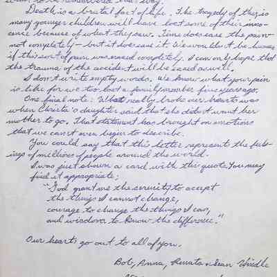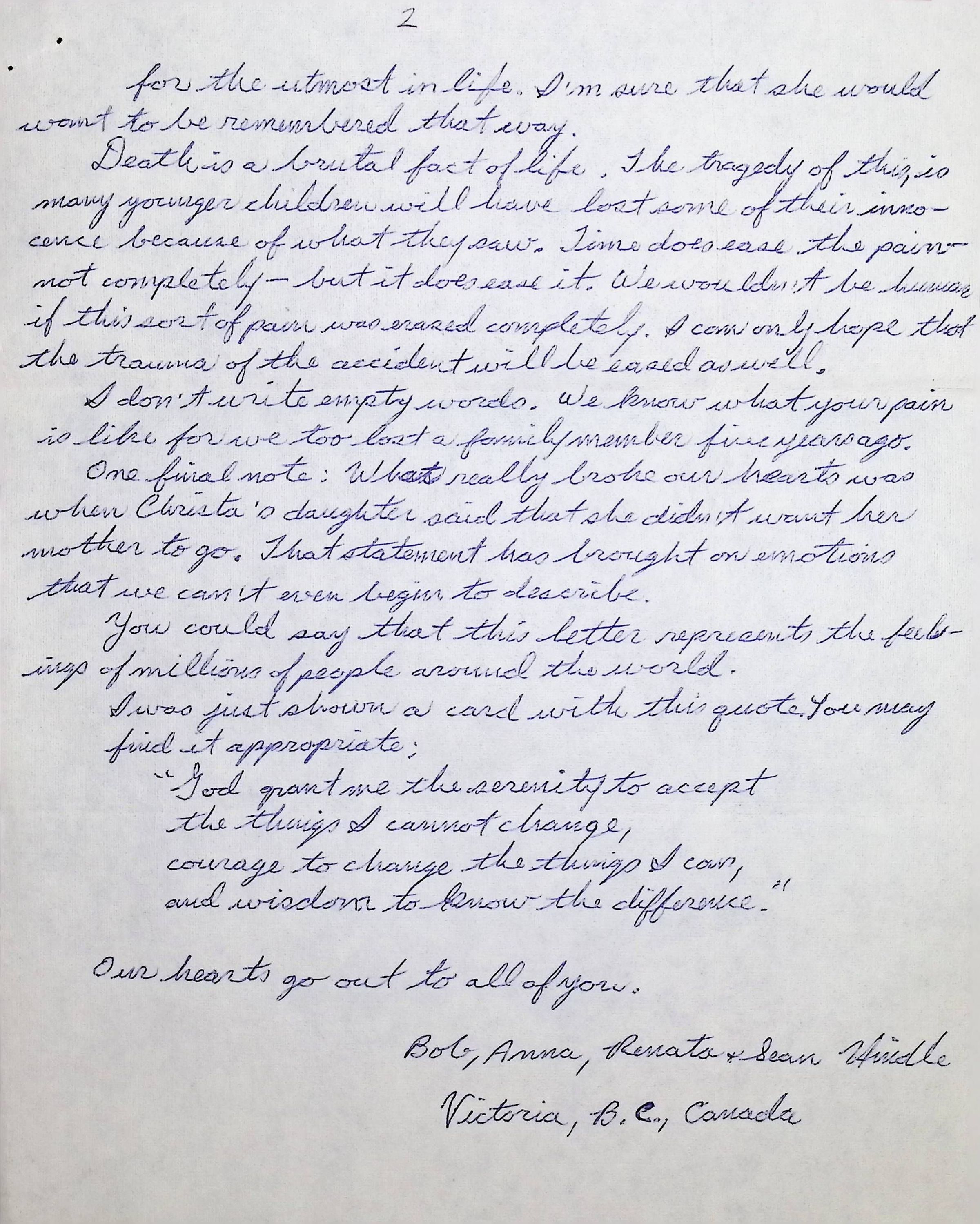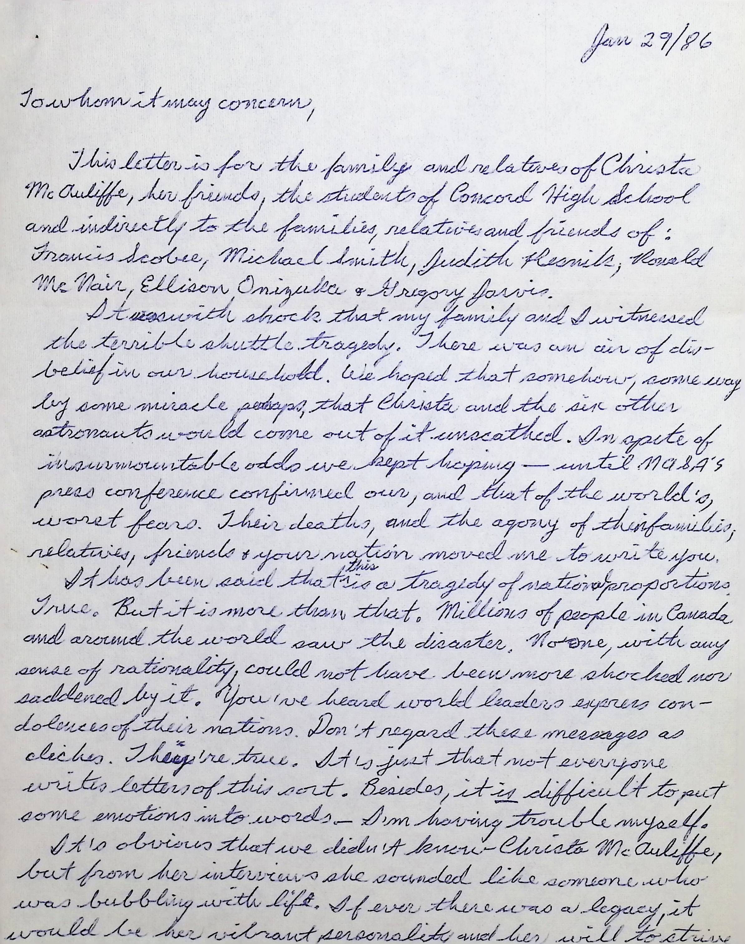 Handwritten Letter from Bob, Anna, Renato + Sean Hindle Dated January 29, 1986