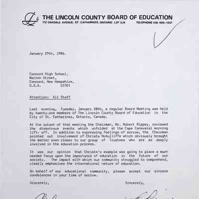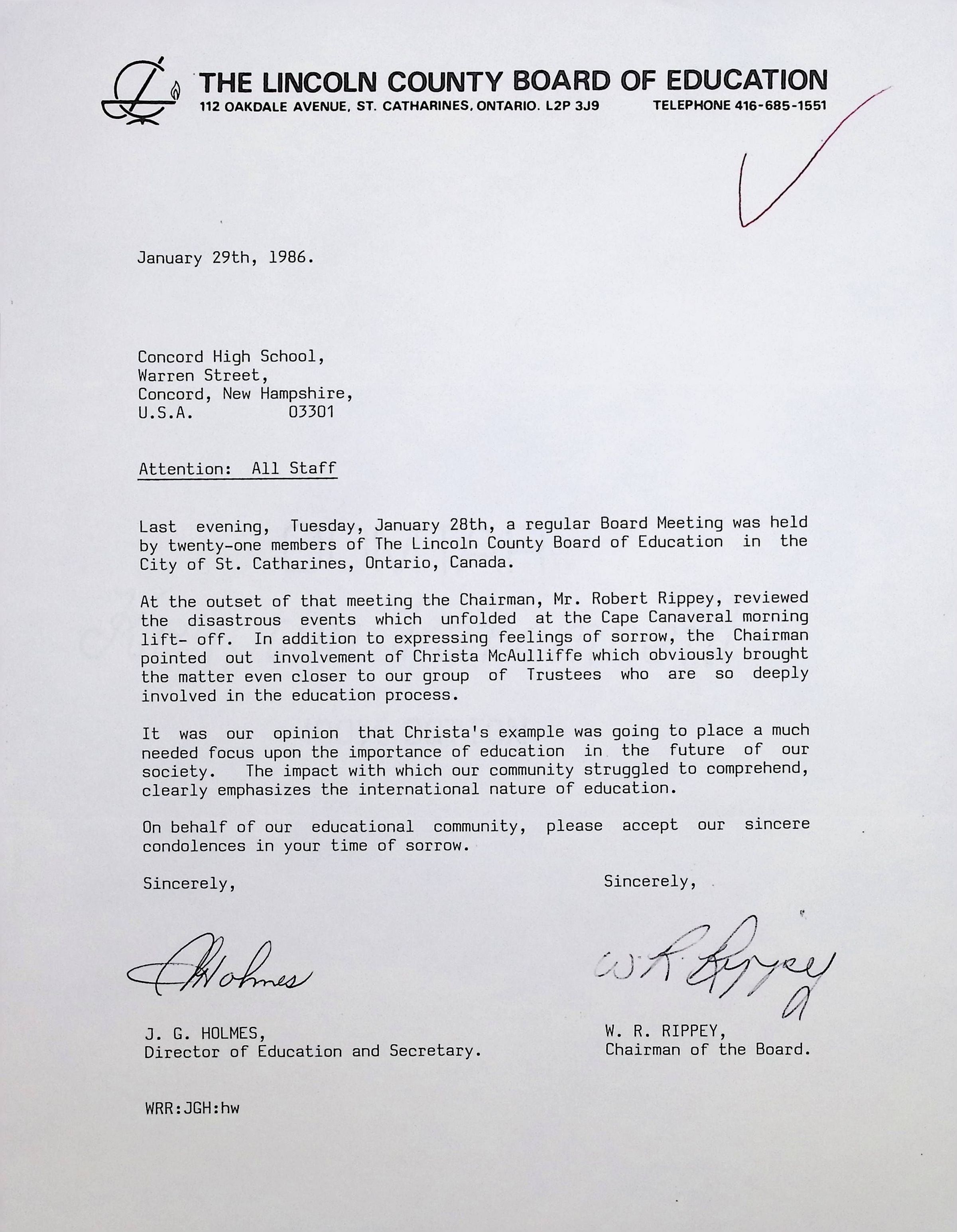 Typed Letter to Concord High School from J.G. Holmes and W.R. Rippey (The Lincoln County Board of Education)