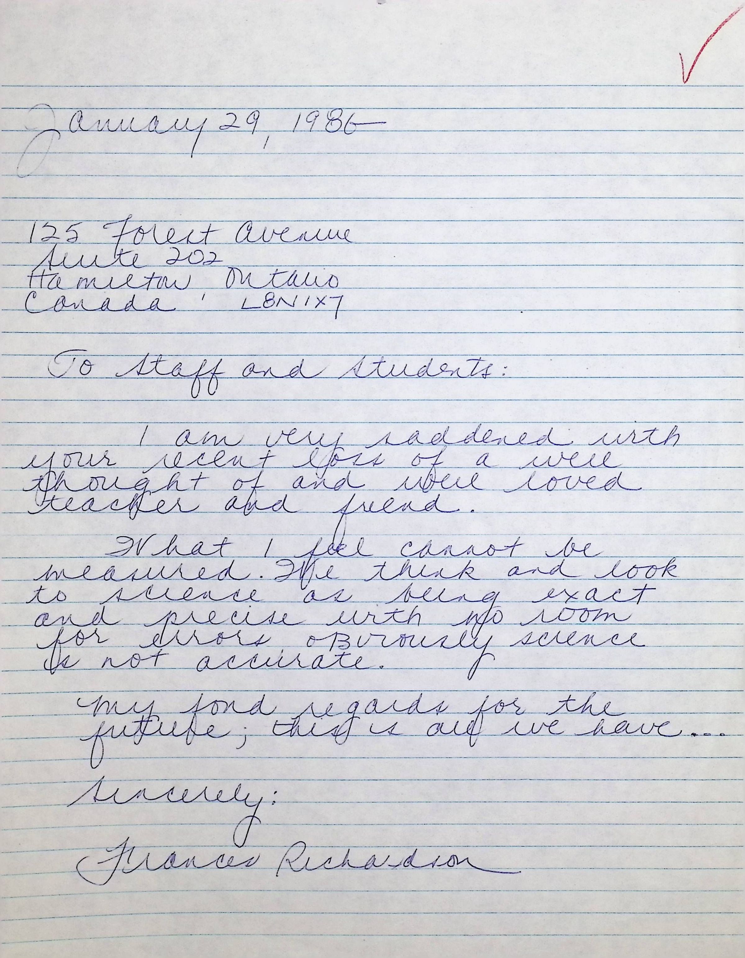 Handwritten Letter to Staff and Students of Concord High School from Francis Richardson