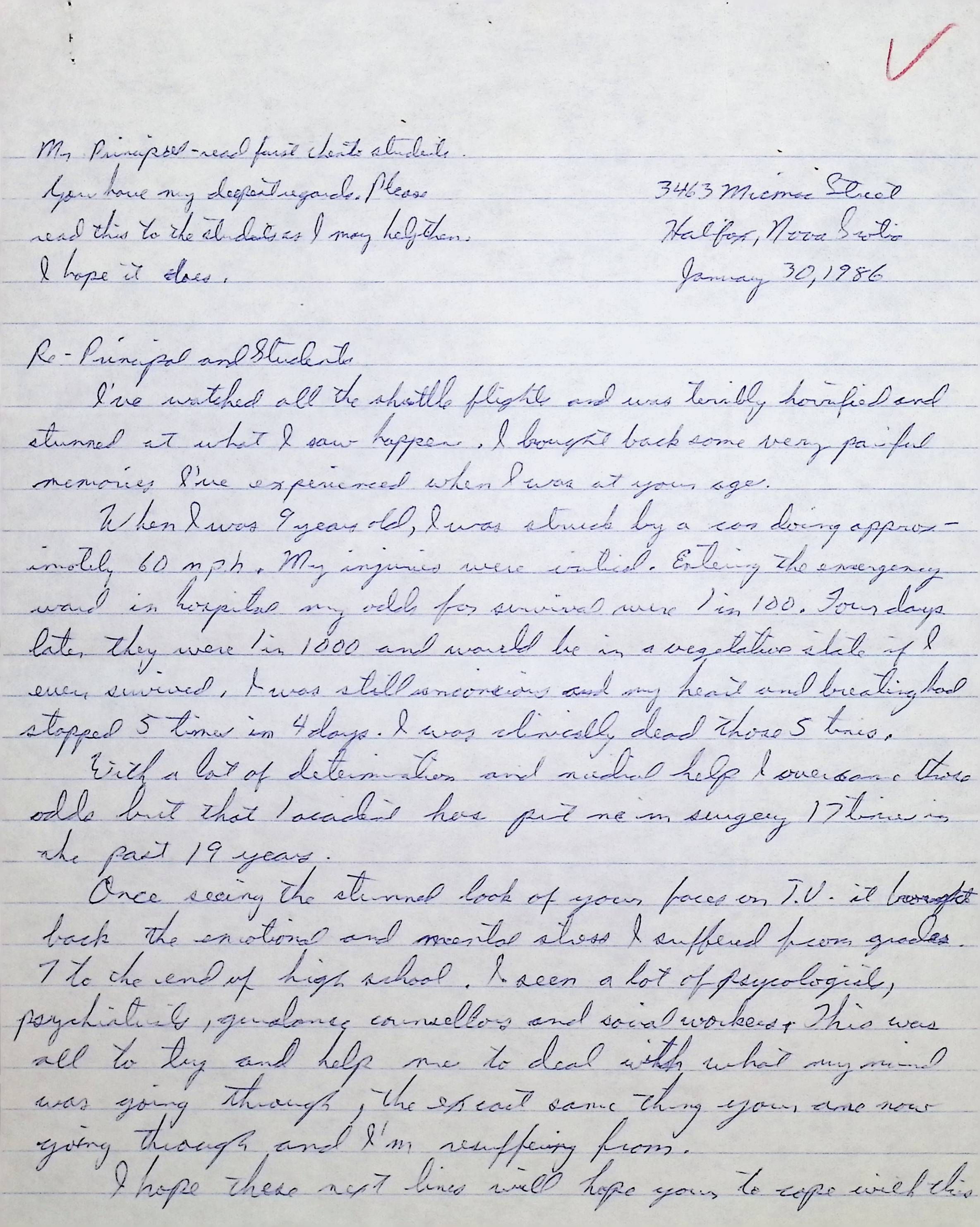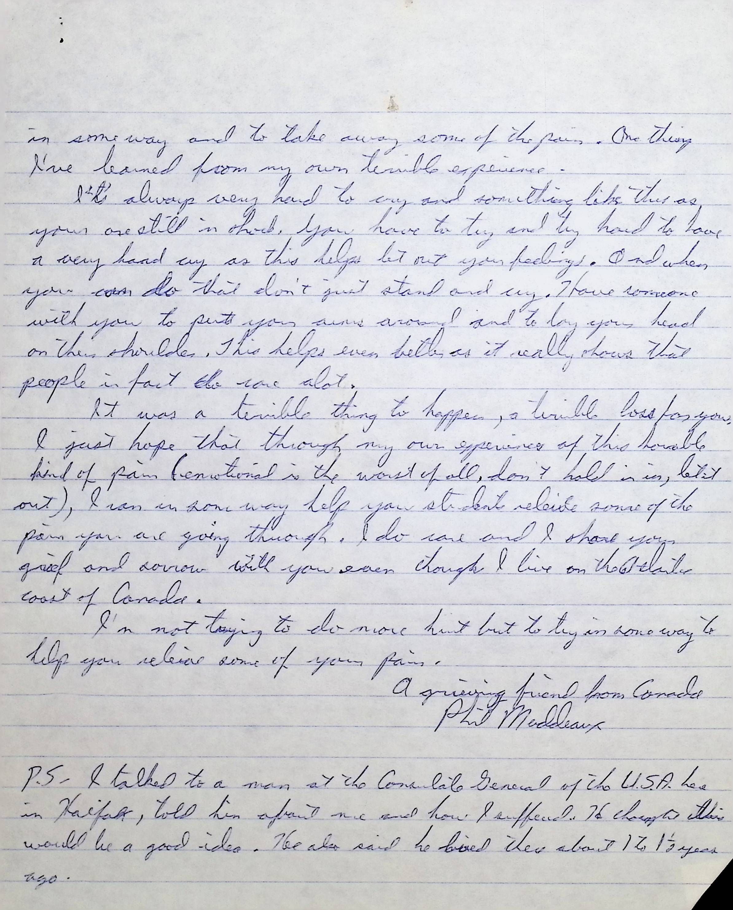 Handwritten Letter to the Principal and Students of Concord High School from Phil Meddeaux