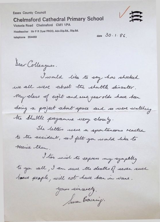 Handwritten Letter from Susan Browning of Chelmsford Cathedral Primary School