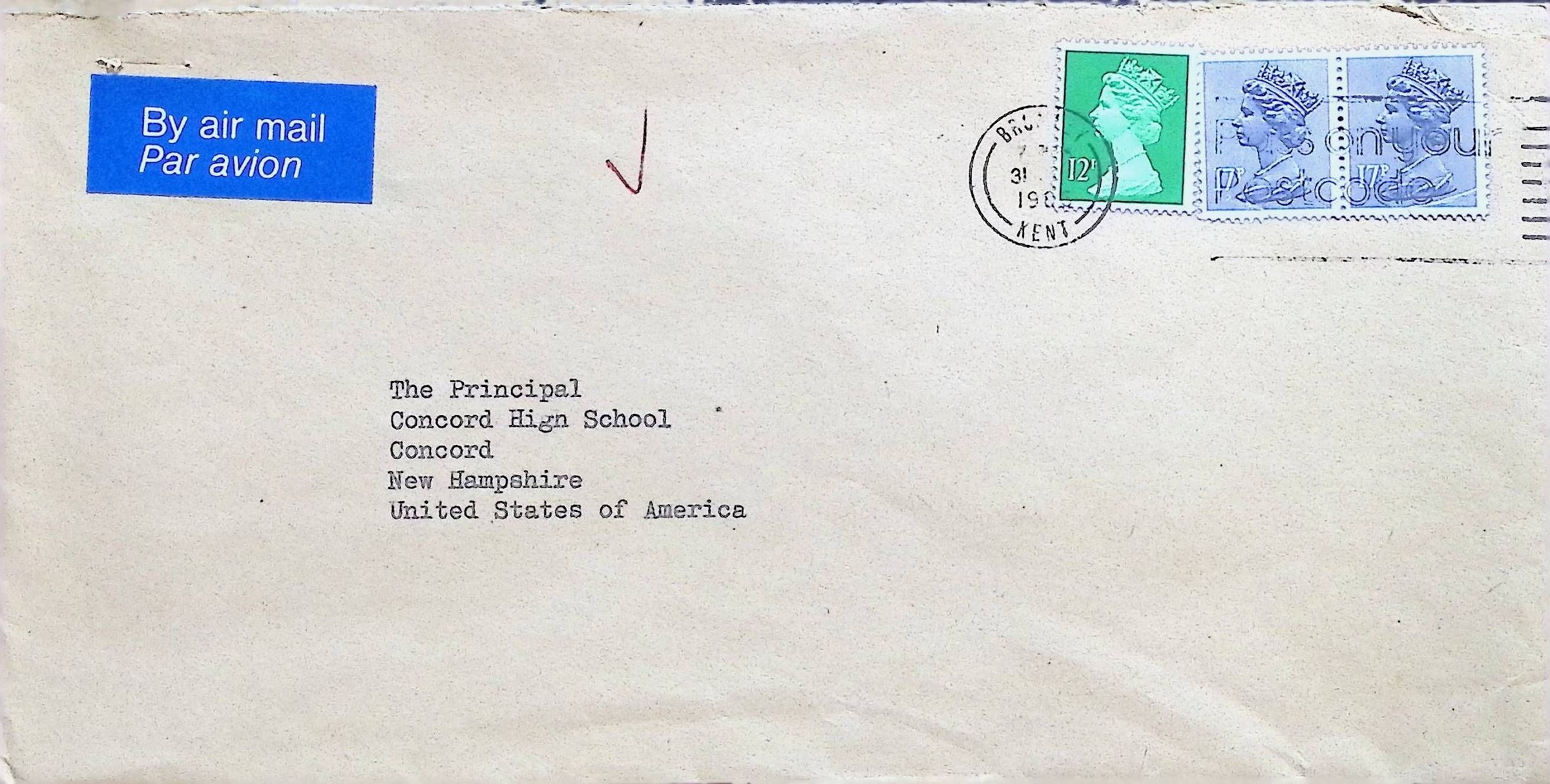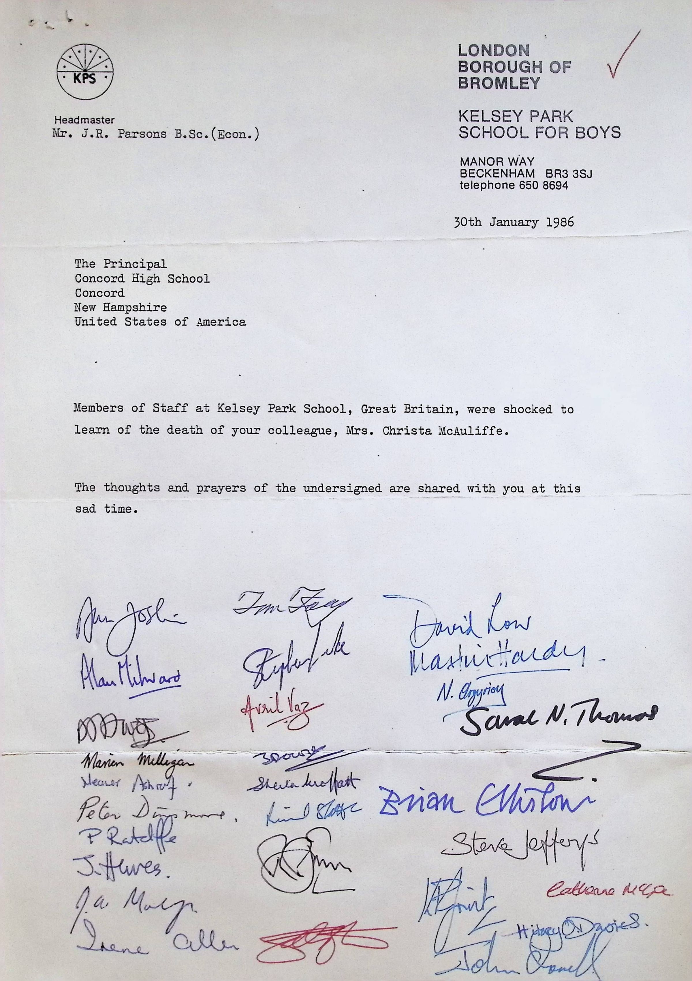 Typed Letter to Charles Foley (Principal of Concord High School) from Kelsey Park School for Boys (England)