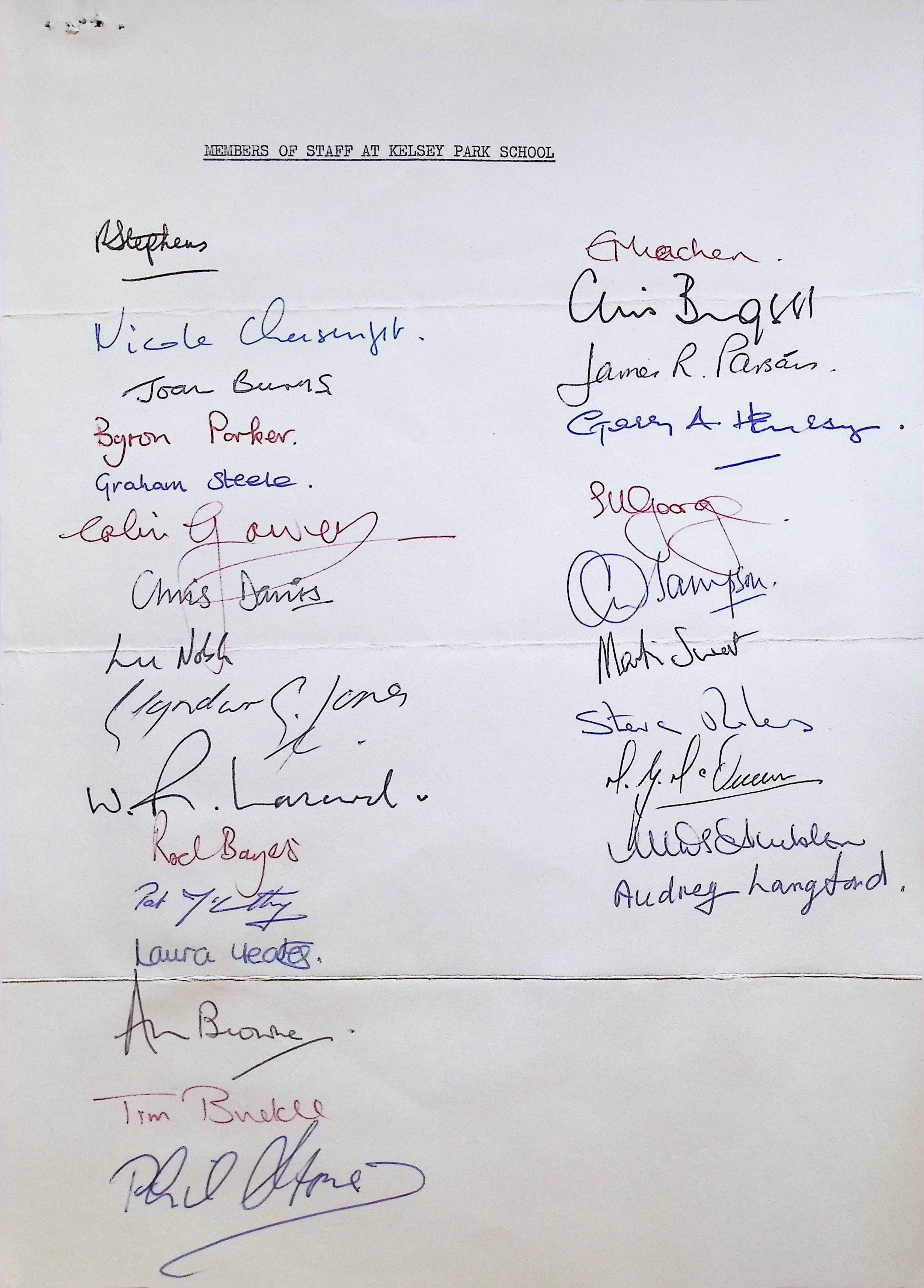 *Signed by members of staff