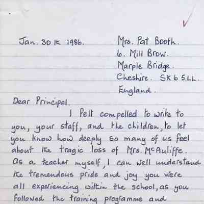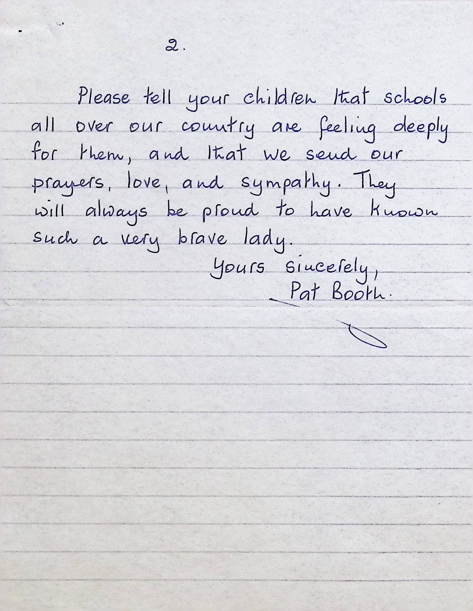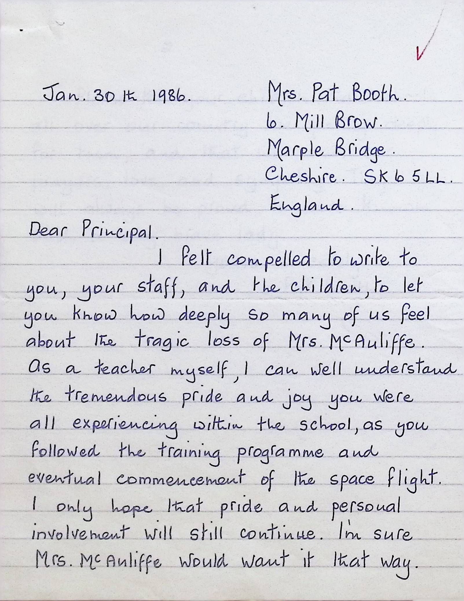 Handwritten Letter to Charles Foley (Principal of Concord High School) from Pat Booth (England)