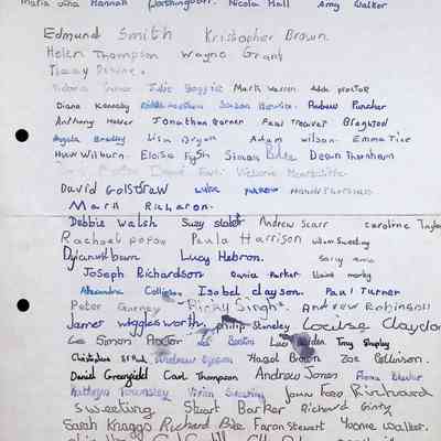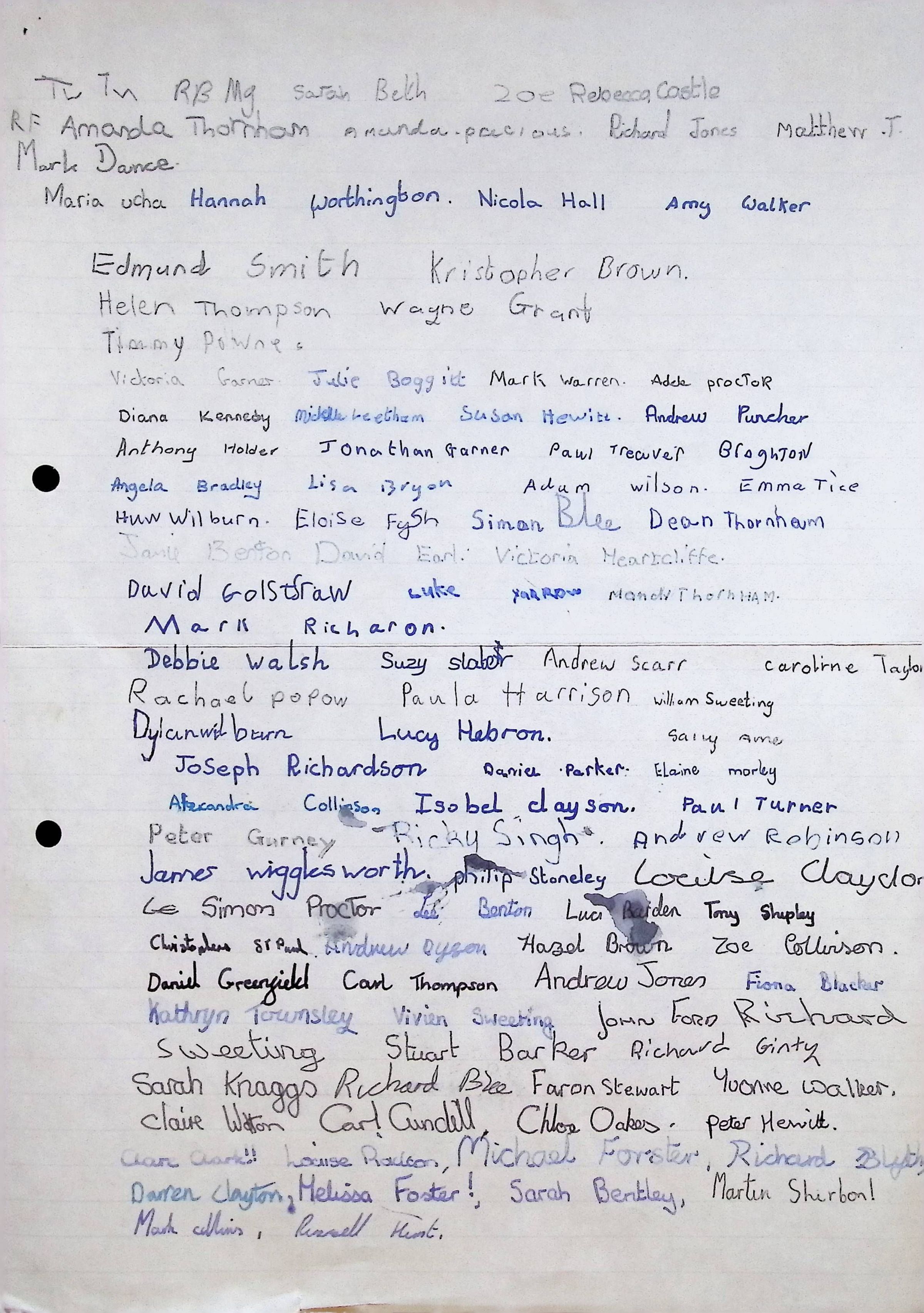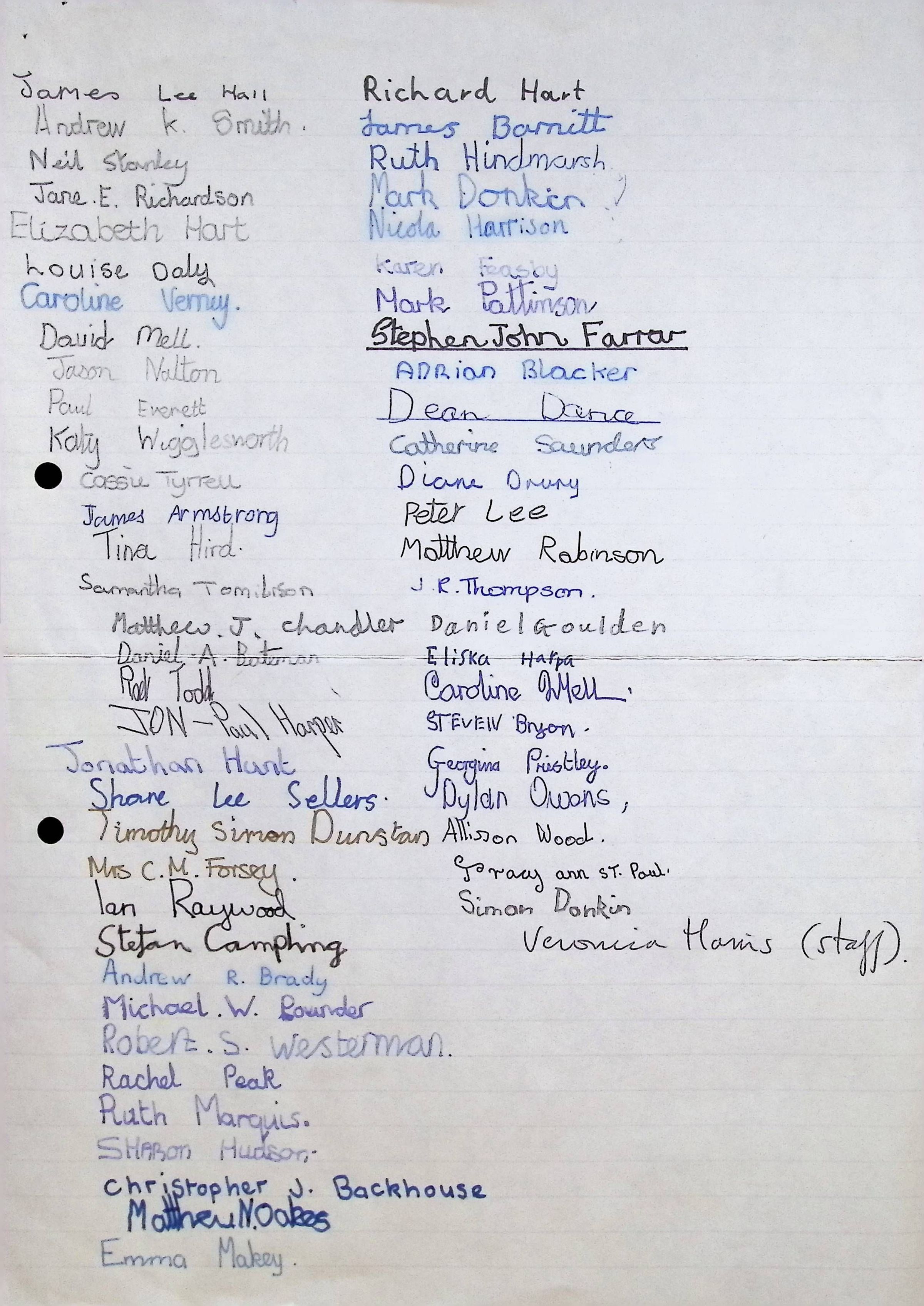 Attached: Signatures of students from Howden Junior SchoolAcquisition