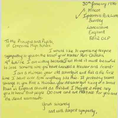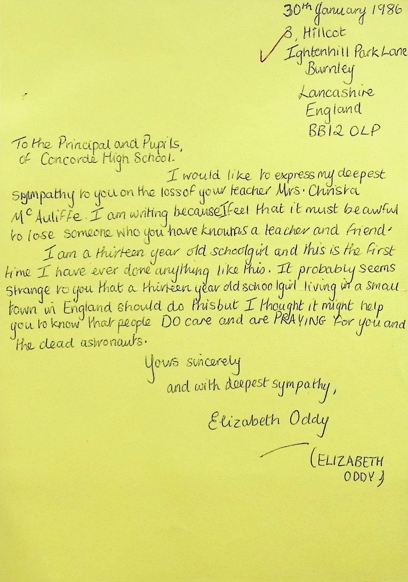Letter to the Principal and Pupils of Concord High School from Elizabeth Oddy (England)