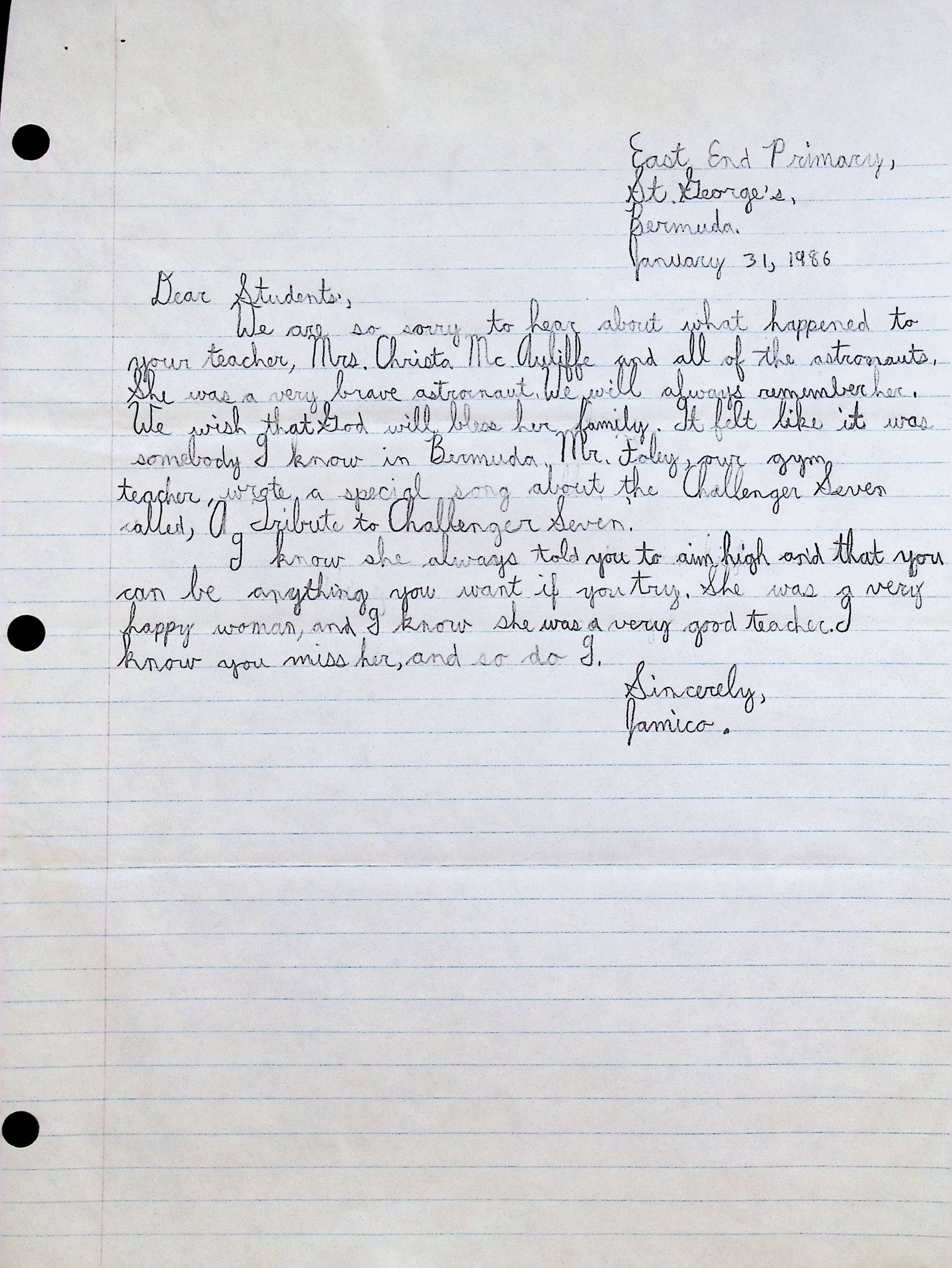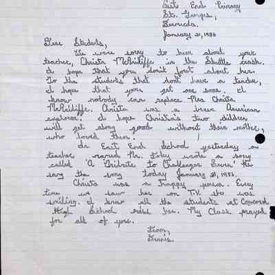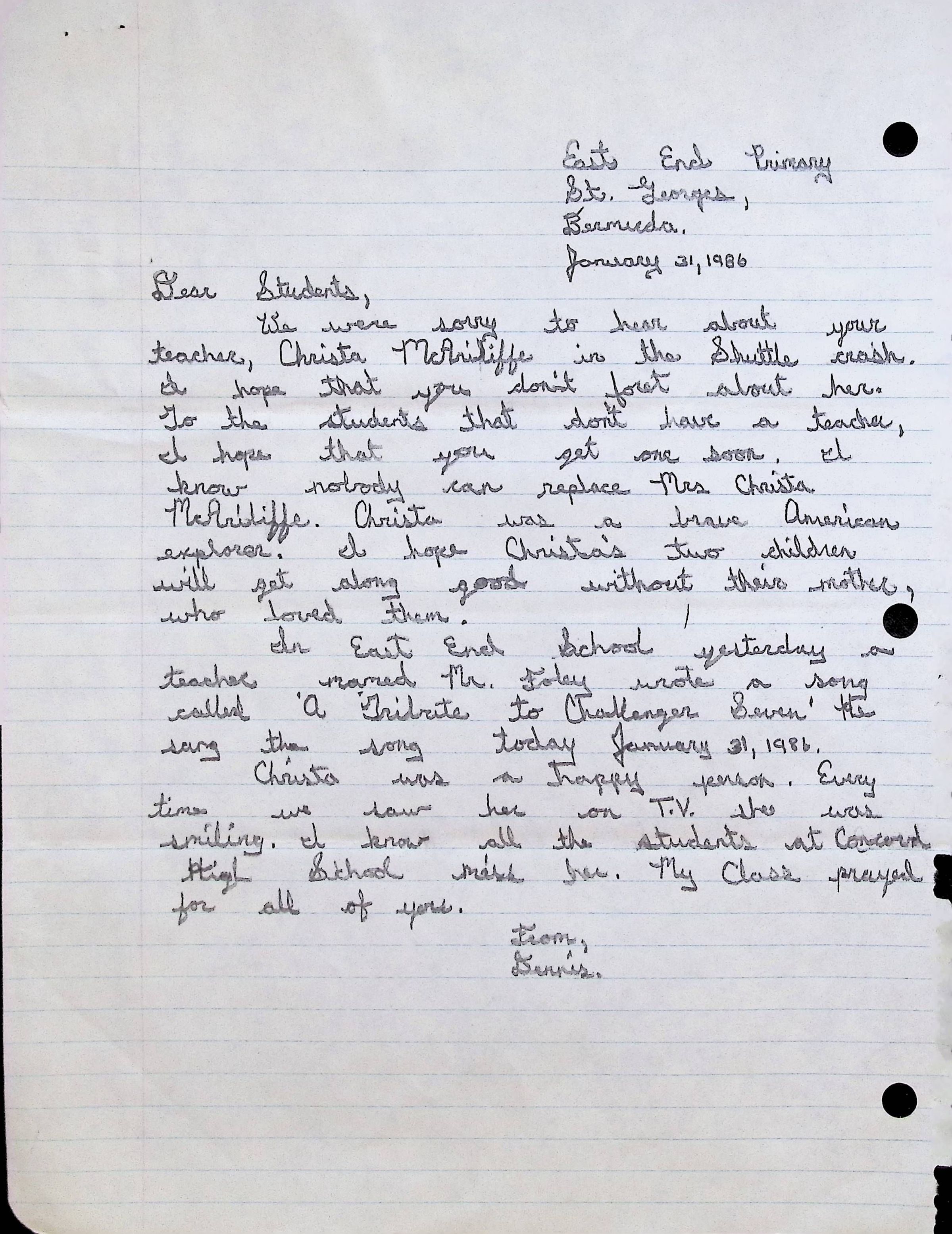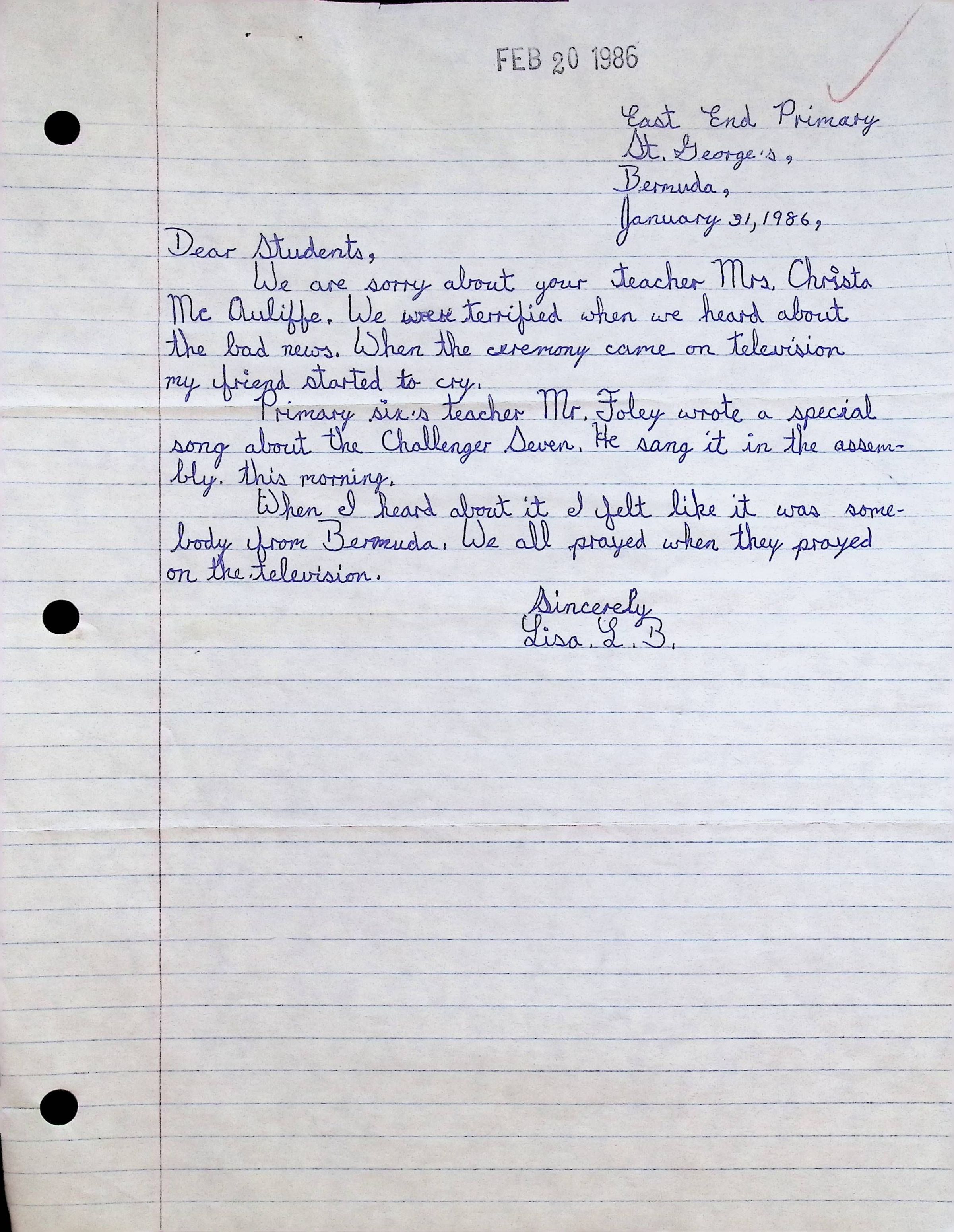 Handwritten Letter to Students of Concord High School from Lisa L.B. (East End Primary)