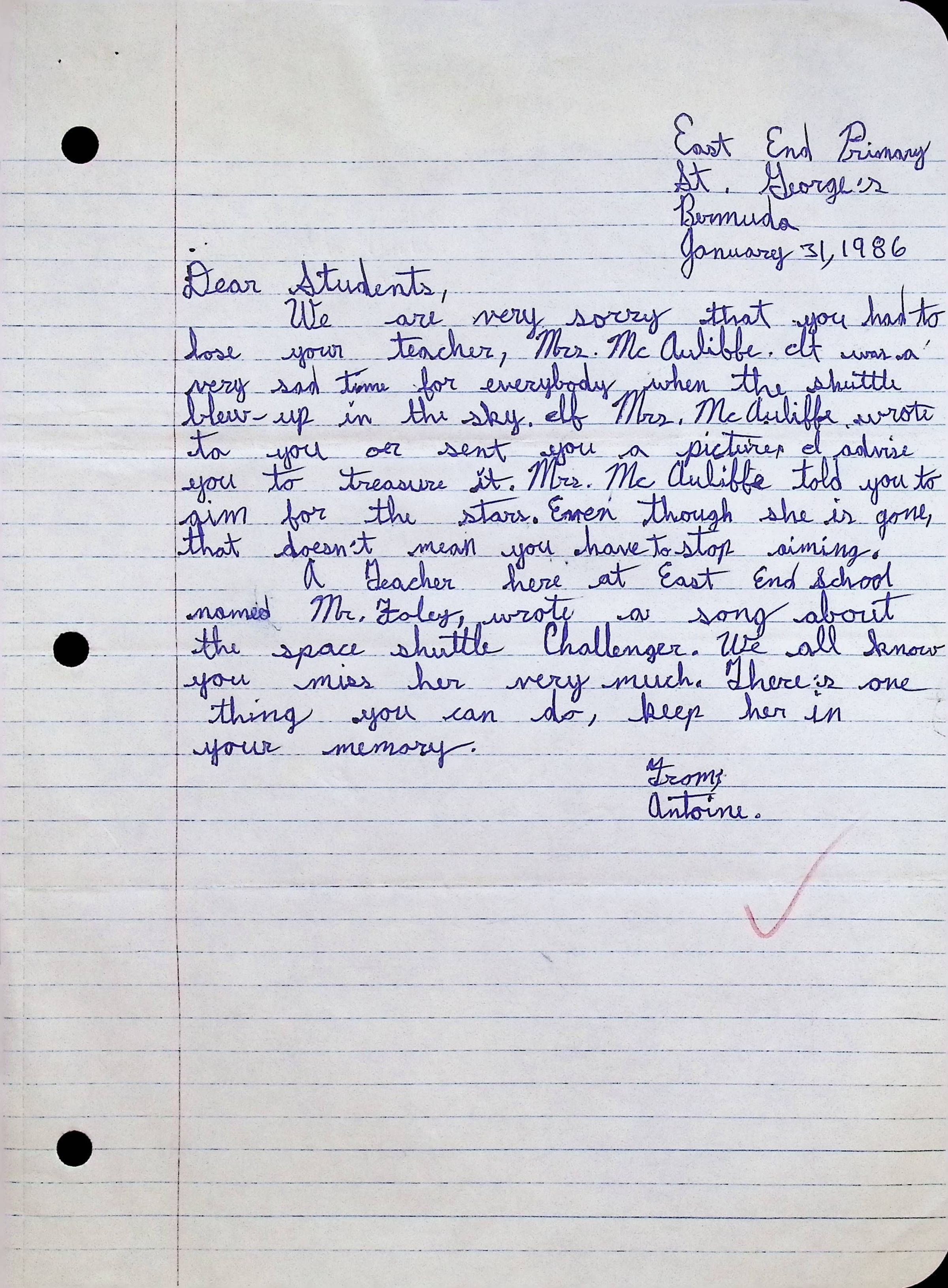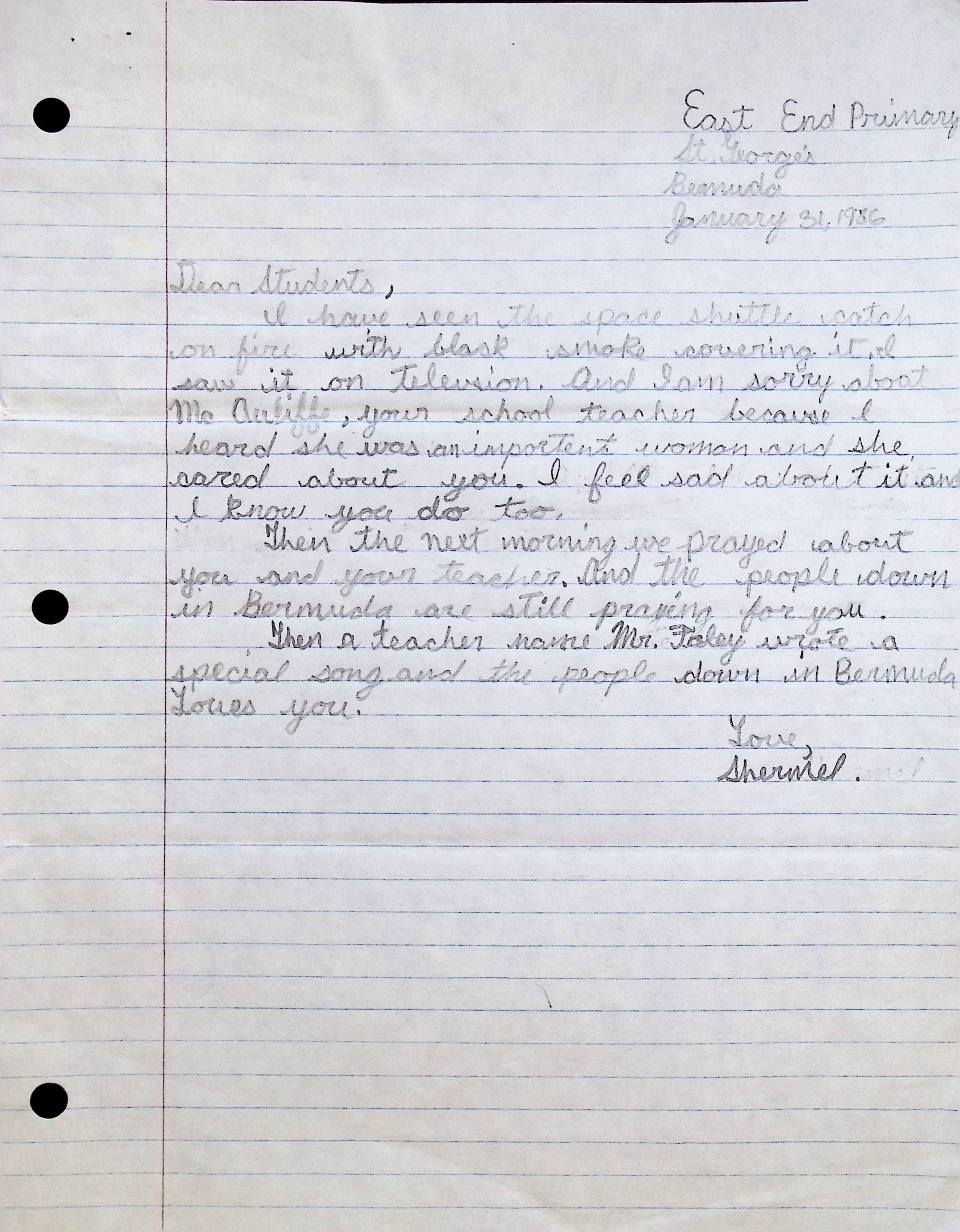Attached: Handwritten Letter to Students of Concord High School from students at East End Primary School