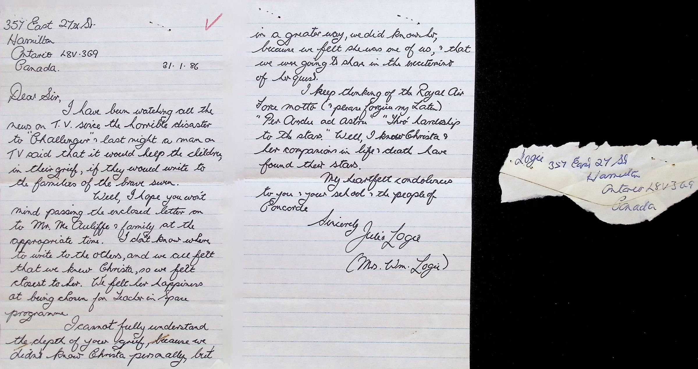 Handwritten Letter from Julia Loge