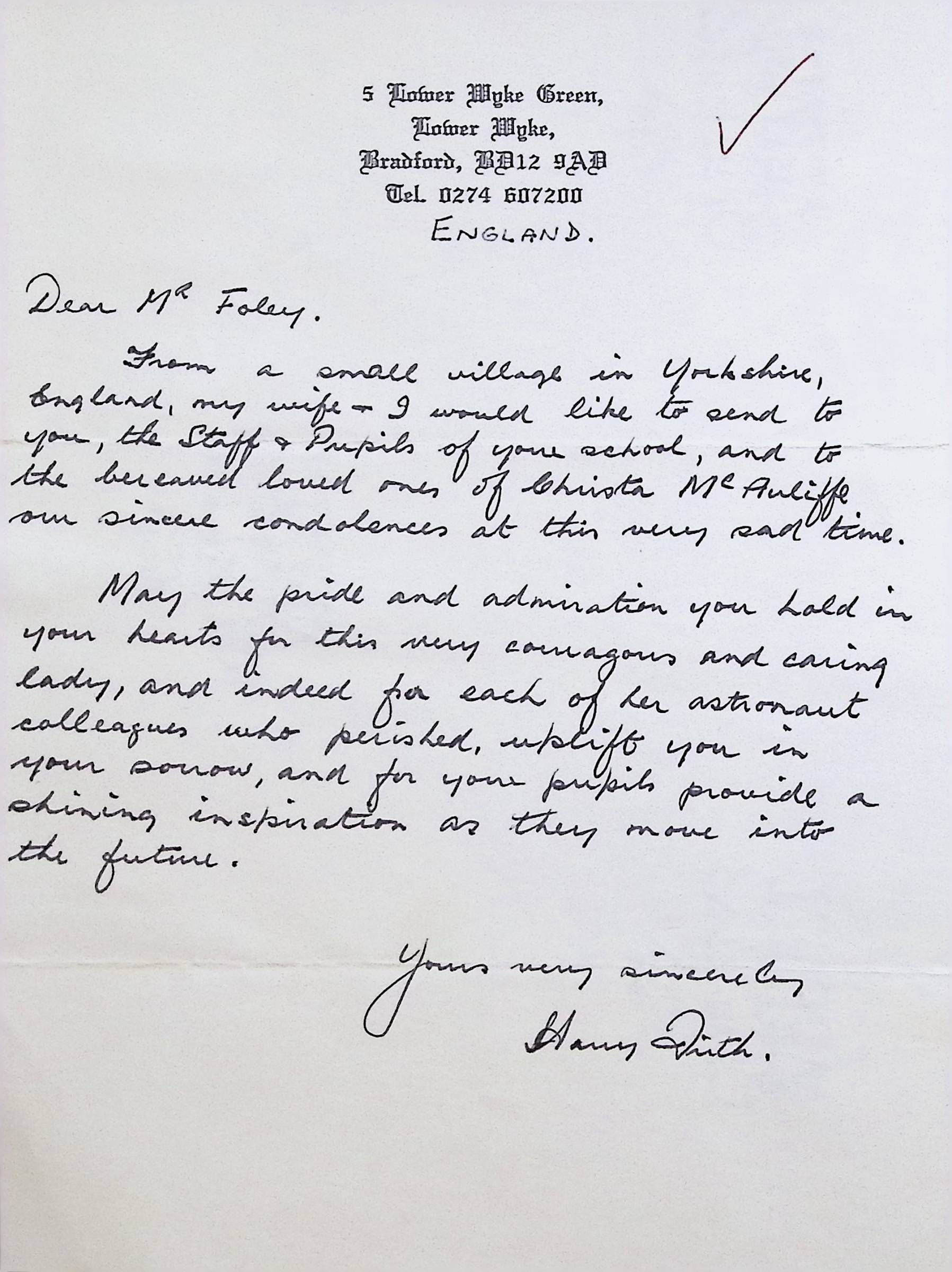 Handwritten Letter to Charles Foley (Principal of Concord High School) from Harry Smith Undated