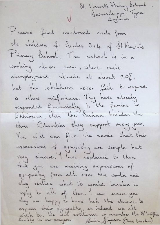 Handwritten letter to Concord High School from Brian Simpson from St. Vincent's Primary School